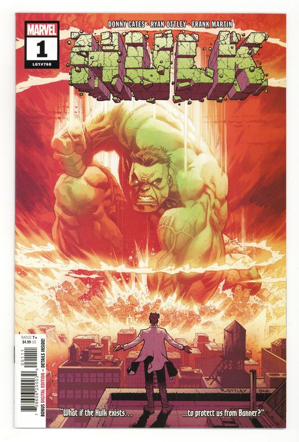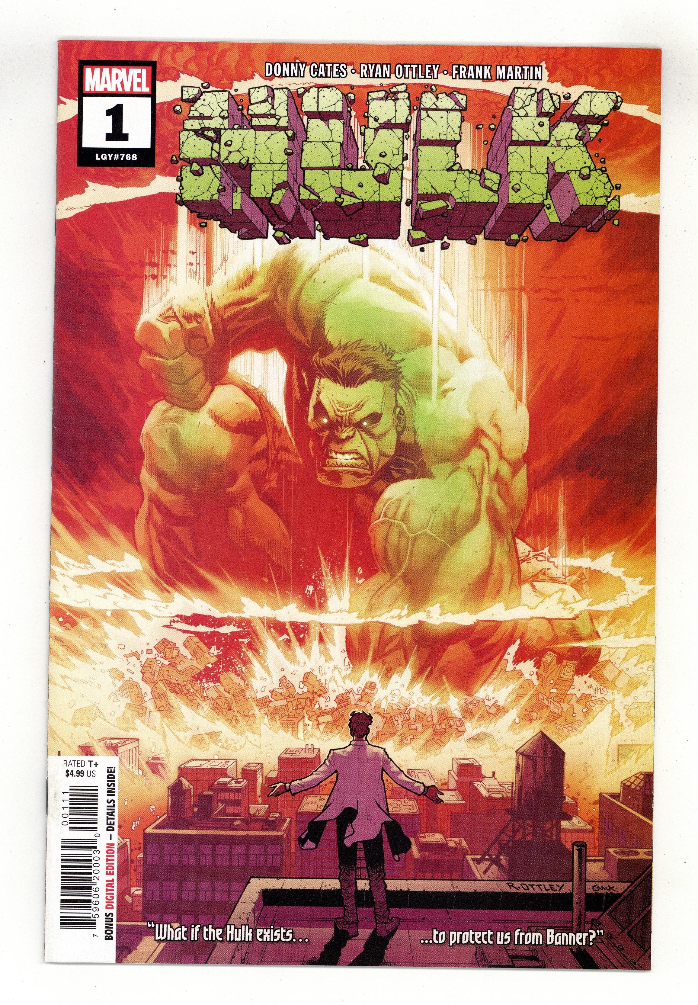 Written by Donny Cates. Art and Cover Ryan Ottley. IMMORTAL NO LONGER! CATES & OTTLEY DELIVER A NEW, COLOSSAL-SIZED ERA! MAD SCIENTIST Part 1 of 6 The uncontrollable rage of the Hulk has reached an all-new level, and nobody – including the Avengers – is prepared to handle it. But is it really the Hulk that people should be afraid of, or is there something missing to this puzzle? Join the superstar creative team of Donny Cates and Ryan Ottley as they look to the stars for the next era of HULK! 36 pages, full color. Rated T+ Cover price $4.99.