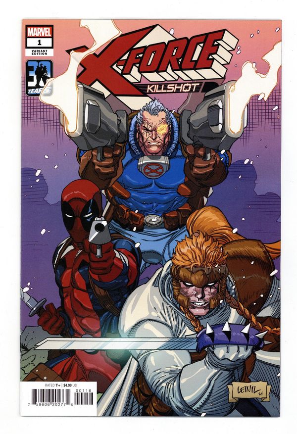 Tags: X-Men$4.50Limited 1 for 25 Retailer Incentive Variant Cover. Written by Rob Liefeld and Chad Bowers. Art by Rob Liefeld. Cover by Leinil Francis Yu. Celebrating the 30th anniversary of the iconic team, creator Rob Liefeld returns to the characters he introduced three decades ago to tell a brand-new adventure featuring these hard-hitting heroes! In this special issue, the man called Cable assembles the combined might of five different X-Force squadrons, each gathered across various points in time for one final mission: to defeat Stryfe once and for all – AT ALL COSTS! Sacrifices, betrayals and revelations await as X-Force attempts their most daring assault ever! 36 pages, full color. Rated T+ Cover price $4.99.