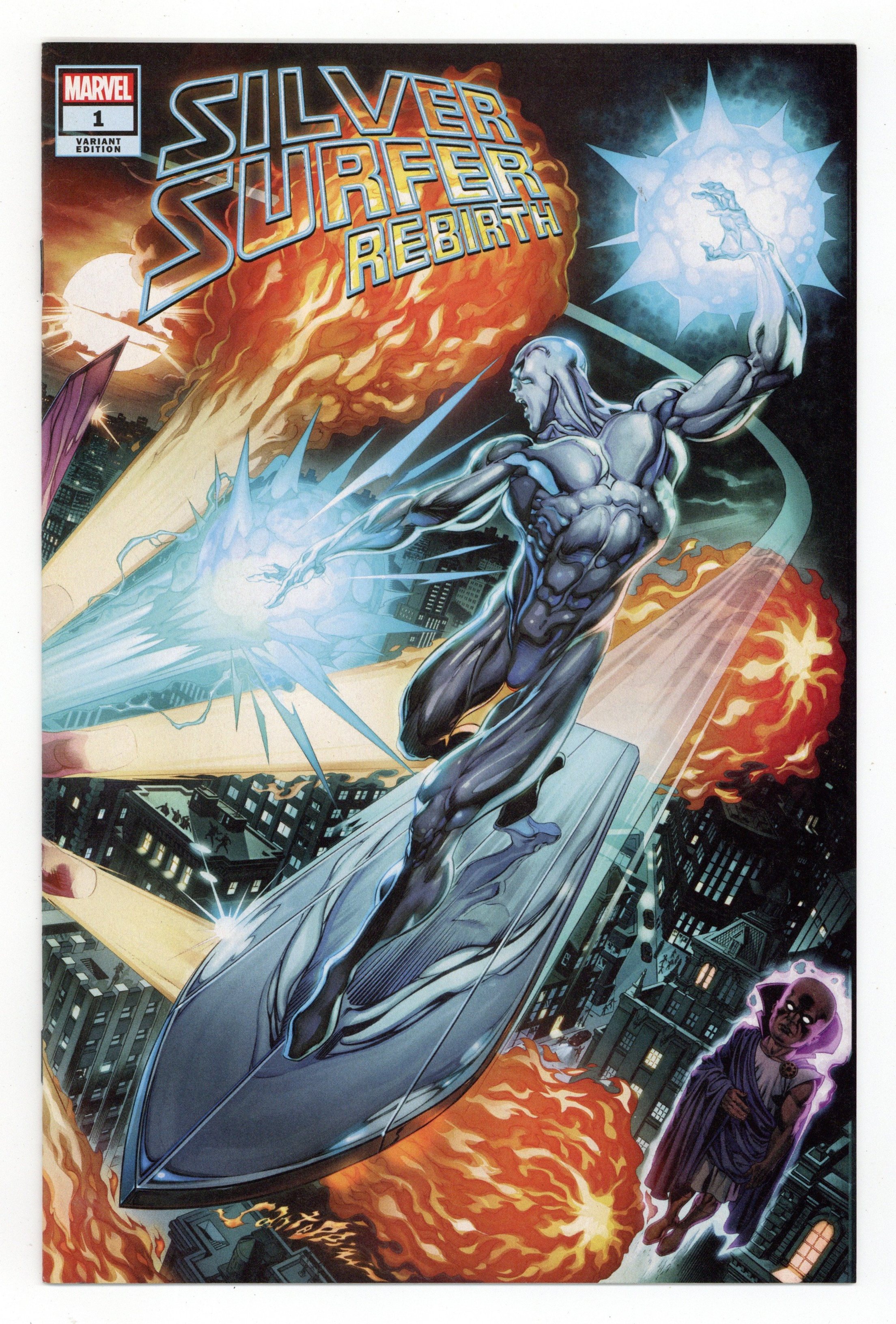$27.00Limited 1 for 25 Retailer Incentive Variant Cover. Written by Ron Marz. Art by Ron Lim. Cover by Claudio Castellini. THEY'RE BACK! No, we don't mean the guys on the cover… We're talking about legendary creators Ron Marz and Ron Lim returning to tell a story set during their fan-favorite run of SILVER SURFER! Someone has stolen the Reality Gem, an object that allows the user to fulfill any wish no matter the consequences! But whoever has taken it is doing things like bringing back the dead hero Captain Mar-Vell. It's up to Silver Surfer to team up with the least likely of allies, Thanos, to find the Gem and restore reality to its proper form. 28 pages, full color. Rated T+ Cover price $3.99.