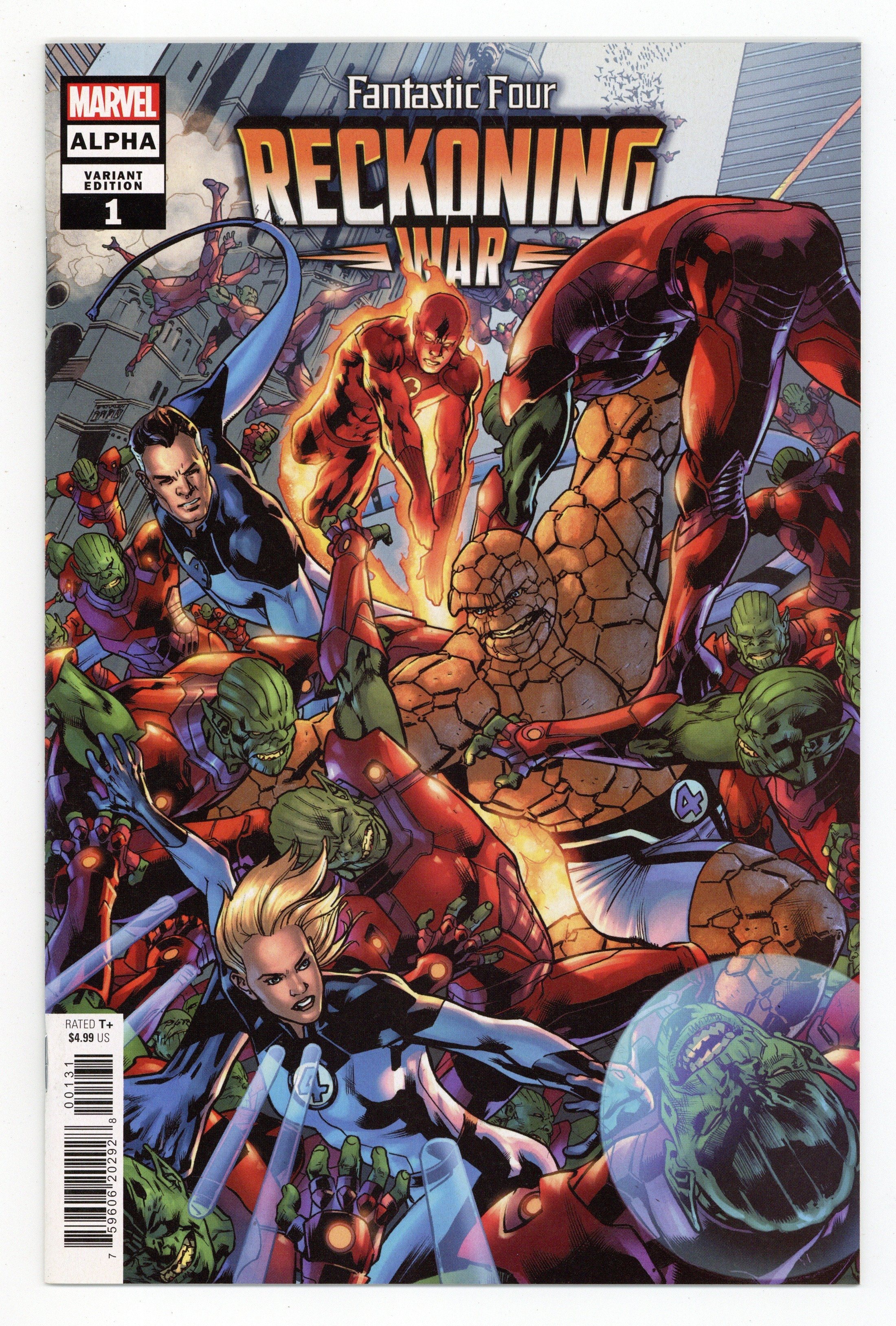 Tags: Reckoning War (part 1), Avengers, Doctor Doom, Fantastic Four, Silver Surfer, Spider-Man, X-Men$7.00Limited 1 for 25 Retailer Incentive Variant Cover. Written by Dan Slott. Art by Carlos Pacheco. Cover by Bryan Hitch. FIFTEEN YEARS IN THE MAKING - AND IT ALL KICKS OFF HERE! In a time before the Kree, Skrull or Shi'ar Empires. Before the emergence of Galactus. Before the birth of Asgard. There was the First War. The greatest war to ever rage across the Multiverse. Today, it is reignited. This is the Day of Reckoning. And all that stands between all of reality and revenge from the dawn of time are the heroes of Earth, the Fantastic Four and the mind of Mister Fantastic. Starring the FF, She-Hulk, Jack of Hearts, the Unseen, the Silver Surfer and everyone in the whole damn Marvel Universe. 36 pages, full color. Rated T+ Cover price $4.99.