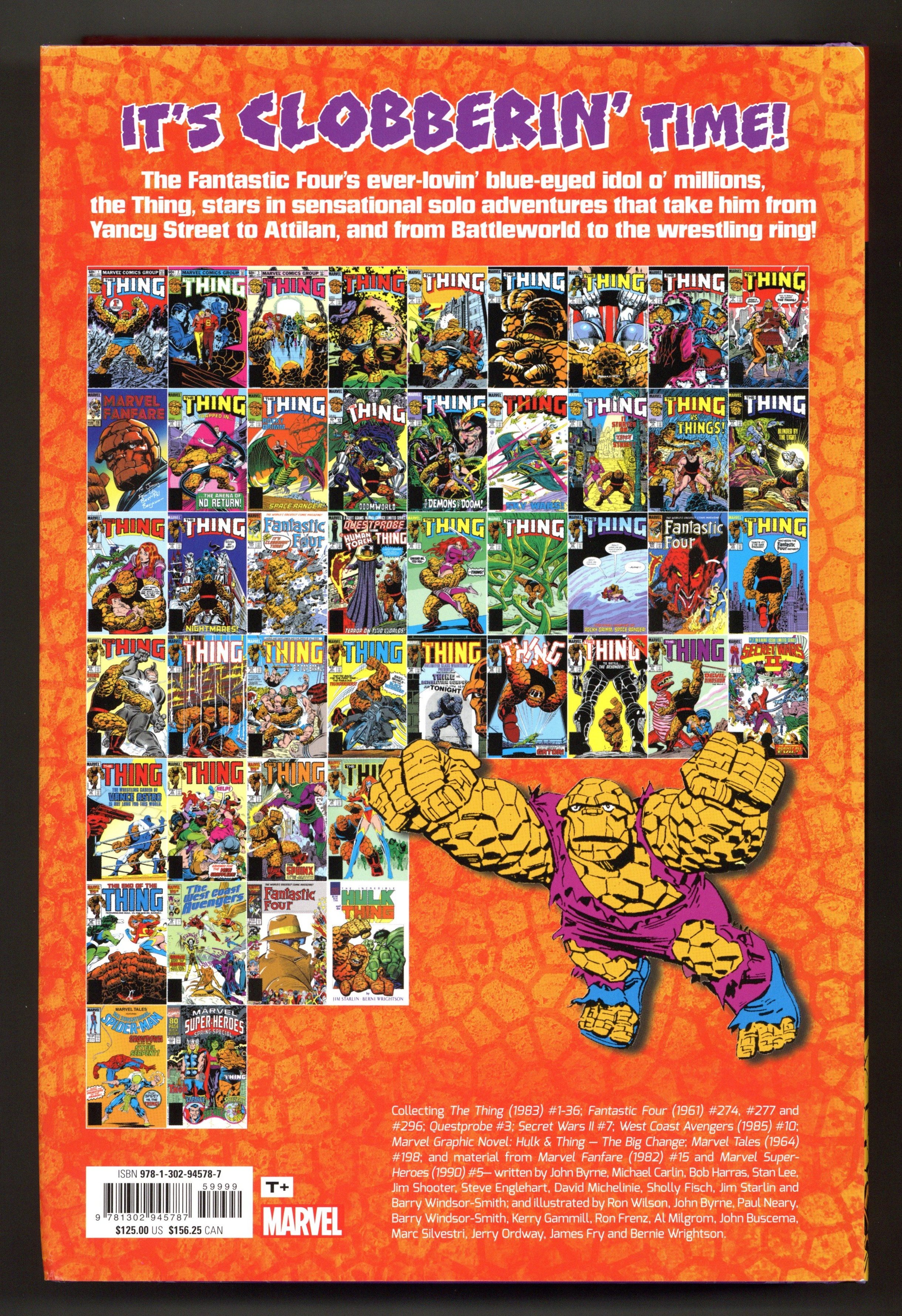 1st printing. Collects The Thing (1983-1986 1st Series Marvel) #1-36; Fantastic Four (1961-1996 1st Series) #274, 277 and 296; Secret Wars II (1985 Marvel) #7; Avengers West Coast (1985-1994) #10; Questprobe (1984 Marvel) #3; Marvel Tales (1964-1994 Marvel) #198; The Incredible Hulk and the Thing: The Big Change GN (1987 Marvel), and material from Marvel Fanfare (1982-1992 1st Series) #15 and Marvel Super Heroes (1990-1993 2nd Series) #5.