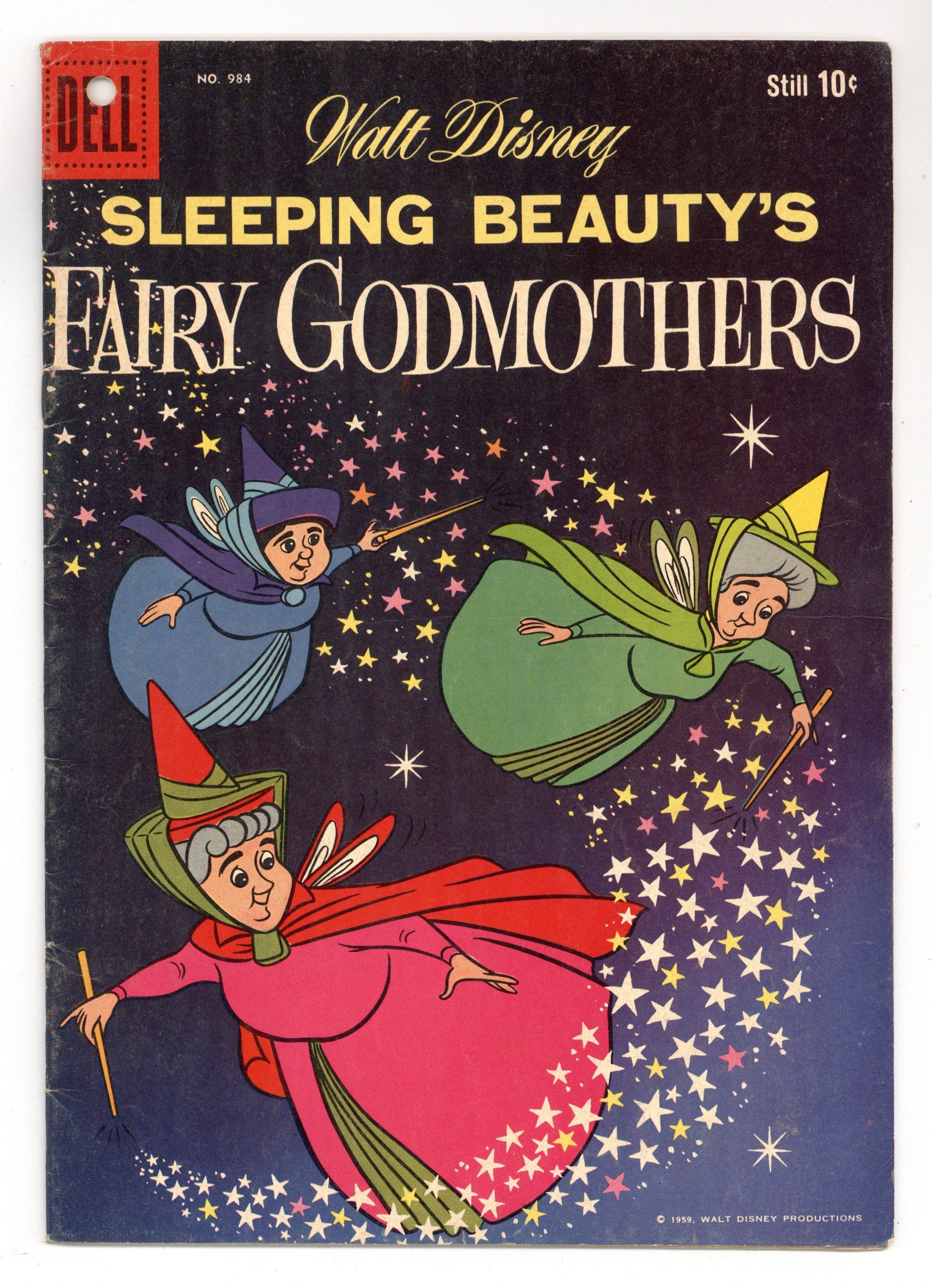 Walt Disney's Sleeping Beauty's Fairy Godmothers. Cover by Norm McGary? Stories by Joe Rinaldi and Carl Fallberg. Art by Al Hubbard. Featuring the tales "Good Deed Day," "To the Rescue" and "The Pilfered Pastry," plus the text story "The Story of Sleeping Beauty" (retells story from movie) and an activity page. Starring Sleeping Beauty's Fairy Godmothers (Flora, Fauna, Merryweather), Reluctant Dragon, Dumbo and Timothy Mouse! 36 pages, full color. Cover price $0.10.
