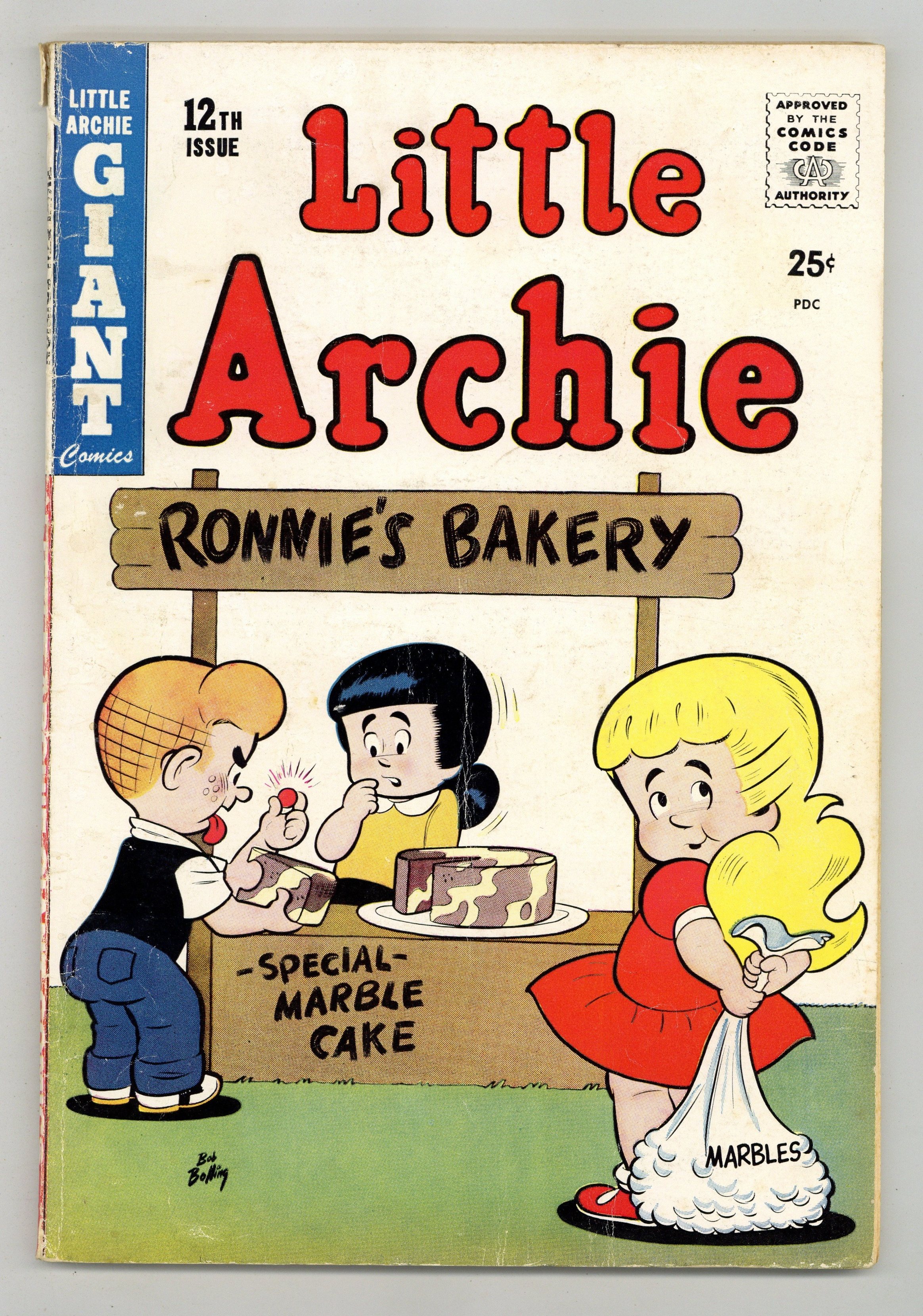Cover art by Bob Bolling. The Famous Flyer, script and art by Bob Bolling; Little Archie becomes obsessed with the idea of becoming famous, and takes to heart his father's advice that to become famous he needs to be a "good mixer." The Handsome Ransom, script and art by Dexter Taylor; The kids find a note from Ambrose saying that he's being held for ransom by the South Side Serpents. The Beauty and the Boat, script and art by Dexter Taylor; Little Archie and Jughead take Evelyn up on her suggestion to start a sightseeing boat tour on Carson's Creek, but reject her offer to be the tour's "boo-ful" main attraction. Big Guns For Washington article. 84 pgs. $0.25. Cover price $0.25.