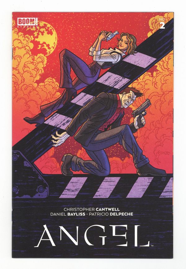 Published Feb 2022 by Boom Studios.$14.00Limited 1 for 25 Retailer Incentive Variant Cover. Written by Christopher Cantwell Art by Daniel Bayliss. Cover by Afu Chan. Things aren't looking good for everyone's favorite Vampire With A Soul… or his friends. Angel finds himself trapped in the Spirit House, struggling to survive. Lorne and Andrew have to deal with a fan favorite's interdimensional arrival… and whether to reveal it to Angel. Oh, and Wesley tries his best to get used to life as a zombie. 24 pages, full color. Cover price $4.99.