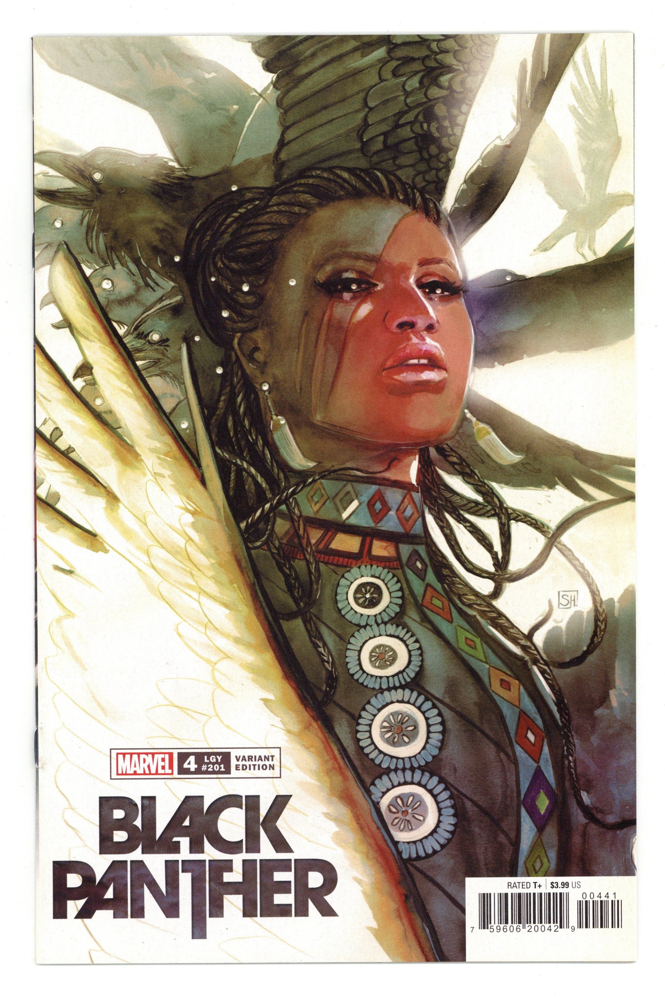 Limited 1 for 25 Retailer Incentive Variant Cover. Written by John Ridley. Art by Juann Cabal. Cover by Stephanie Hans. "THE LONG SHADOW" PART 4 Shuri's life hangs in the balance, and with T'Challa off-planet, things are not looking good! But before T'Challa can help his sister…the truth will finally come out. Has the assassin's ringleader finally been caught?! 28 pages, full color. Rated T+ Cover price $3.99.