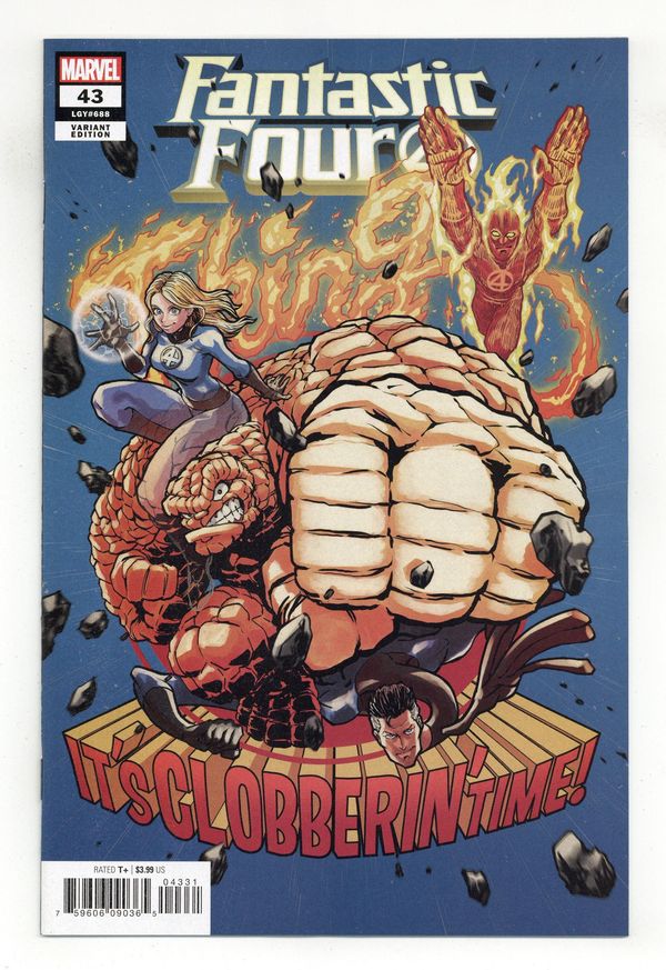 Tags: Fantastic Four$4.49Limited 1 for 25 Retailer Incentive Variant Cover. Written by Dan Slott. Art by Rachael Stott and Andrea Di Vito. Cover by Superlog. THE RECKONING WAR CONTINUES! "Victor Von Doom: Hero of Earth" The last time the Cormorant appeared, he destroyed the Baxter Building and the Latverian Embassy, completely overpowered the Fantastic Four, and left without anyone laying a hand on him. Now, for the sake of the universe, Doctor Doom must face him alone. Hail Doom! Meanwhile, four of Earth's greatest heroes are trapped in the toxic wastelands of the Barrens...and there is no way for all of them to make it out alive. Guest-starring: The Silver Surfer, She-Hulk, and an army of Marvel's most cosmic champions! 28 pages, full color. Rated T+ Cover price $3.99.