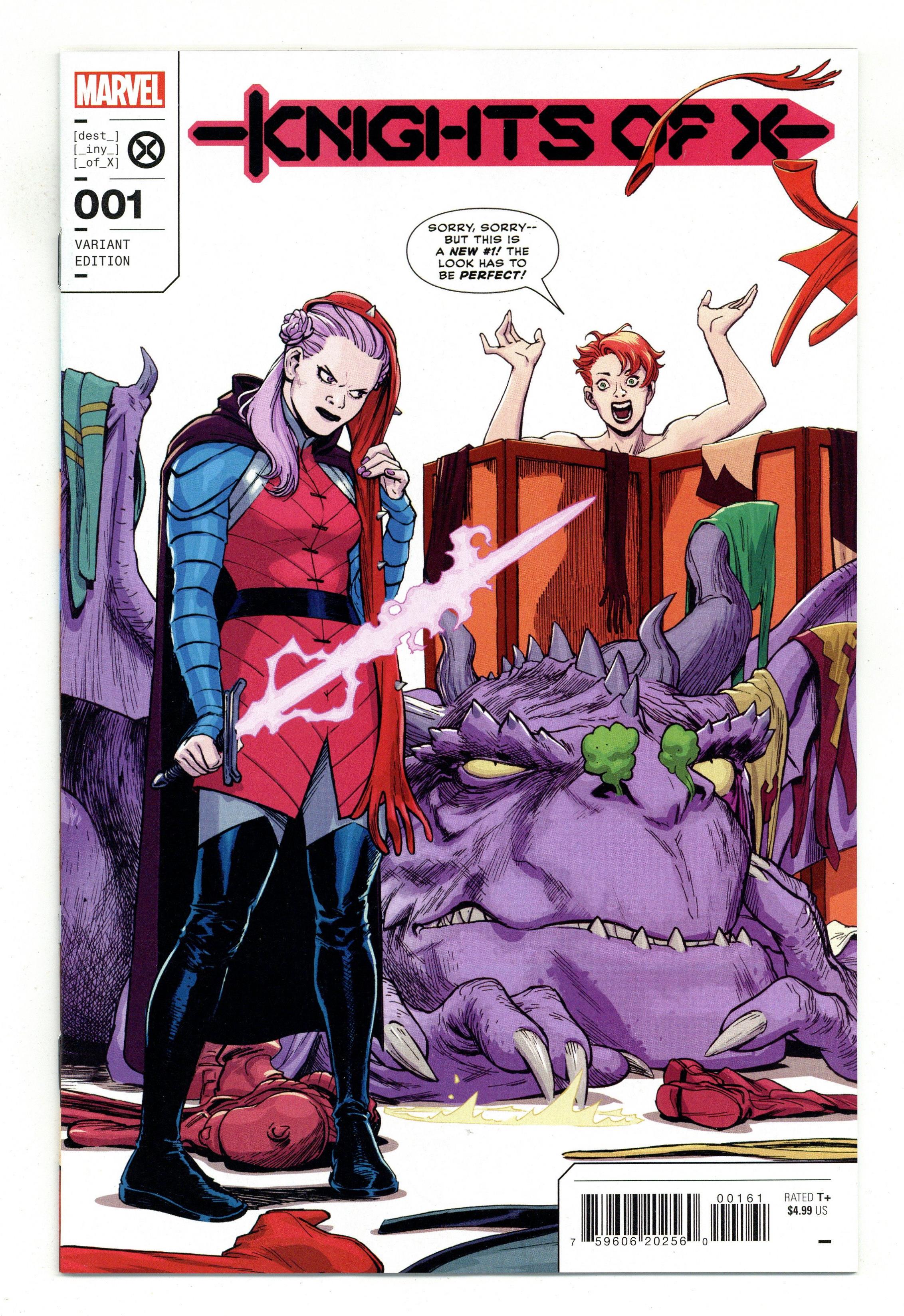 Tags: X-Men$2.50Limited 1 for 50 Retailer Incentive Variant Cover. Written by Tini Howard. Art by Bob Quinn. Cover by David Lopez. THE QUEST BEGINS HERE, WHERE MUTANTS ARE HATED AND FEARED ONCE AGAIN! The gates to Otherworld are closed - and Captain Britain is trapped on the wrong side! Usurpers Merlyn and his right-hand man, King Arthur, are now in control of Lunatic Citadel. Furies the size of Sentinels raze villages to the ground in their hunt for the "witchbreed." Cutoff from Krakoa, Betsy Braddock is Otherworld's only hero - and to save her people, Betsy must recruit a round table of her own. The Knights of X gather to restore the rightful order and rescue desperate mutants - but their quest is about to get so much bigger than that. This is the era of destiny…and the fate of Otherworld lies at the center of mutantkind's future. Don't miss this essential piece of the new Krakoa! 36 pages, full color. Rated T+ Cover price $4.99.