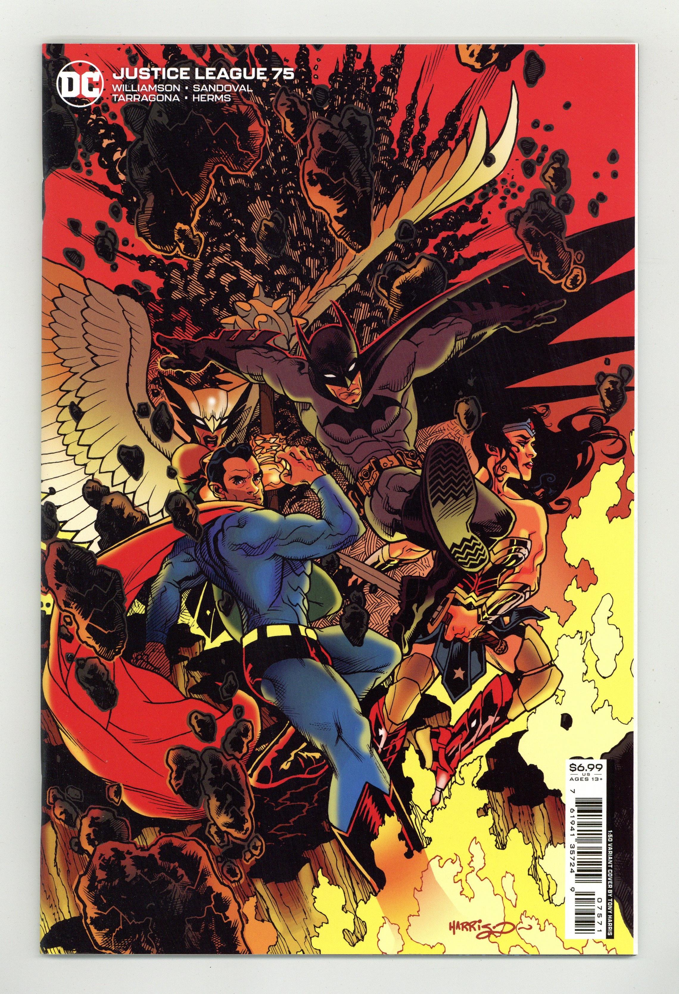 Tags: Dark Crisis (On Infinite Earths) (part 0.12), Justice League/Society$5.00Limited 1 for 50 Retailer Incentive Variant Cover. Written by Joshua Williamson. Art by Rafa Sandoval. Cover by Tony Harris. Oversize special issue! Superstar writer Joshua Williamson pens the beginning of the next big DCU event! It all starts here! A new Dark Army made up of the DCUs greatest villains has formed on the edges of the Multiverse! The DCUs best and most powerful heroes are pulled together in an epic war to push the darkness back! But in the end, they are no match for it! Thats right, you heard it here first: the Justice League are killed by the Dark Army, with only one survivor to warn the remaining heroes of Earth about what is coming for them! FINAL ISSUE! 48 pages, full color. Rated T+ Cover price $6.99.