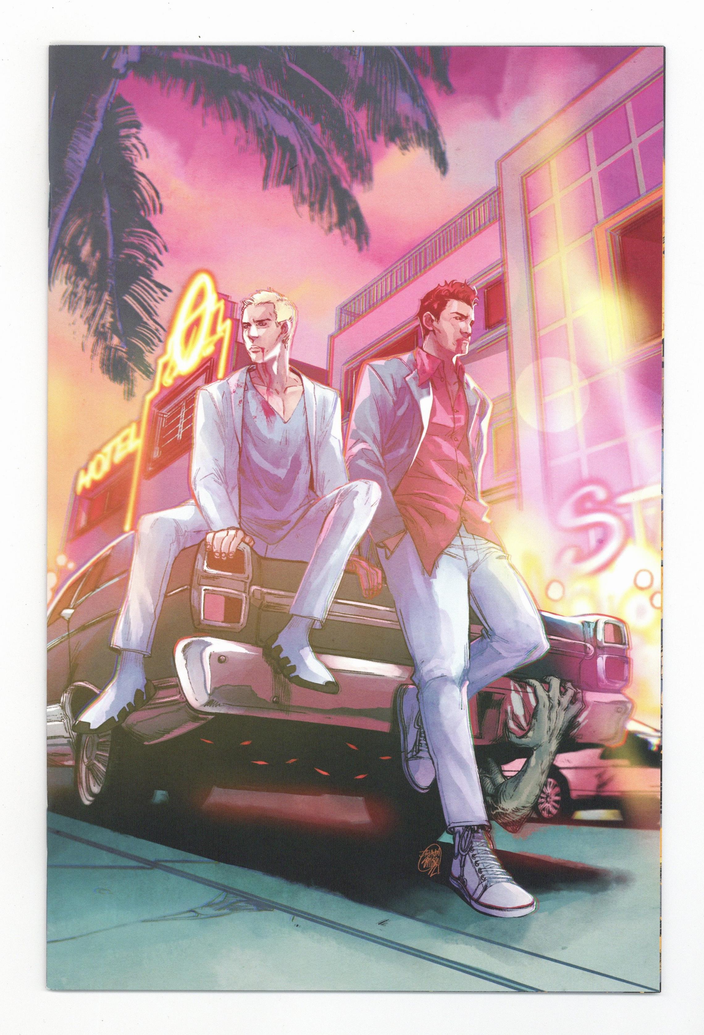 Published May 2022 by Boom Studios.$14.00Limited 1 for 25 Retailer Incentive Variant Cover. Written by Christopher Cantwell. Art by Daniel Bayliss. Cover by Jahnoy Lindsay. In this Spike-centric story, Spike is just fine not being the hero Angel is, but when Wesley makes yet another sacrifice for him, Spike goes on a mission to save his life. Meanwhile, Angel realizes there might be a sinister version of himself running around-and a new movie role outside of Los Angeles on the horizon… 24 pages, full color. Cover price $4.99.