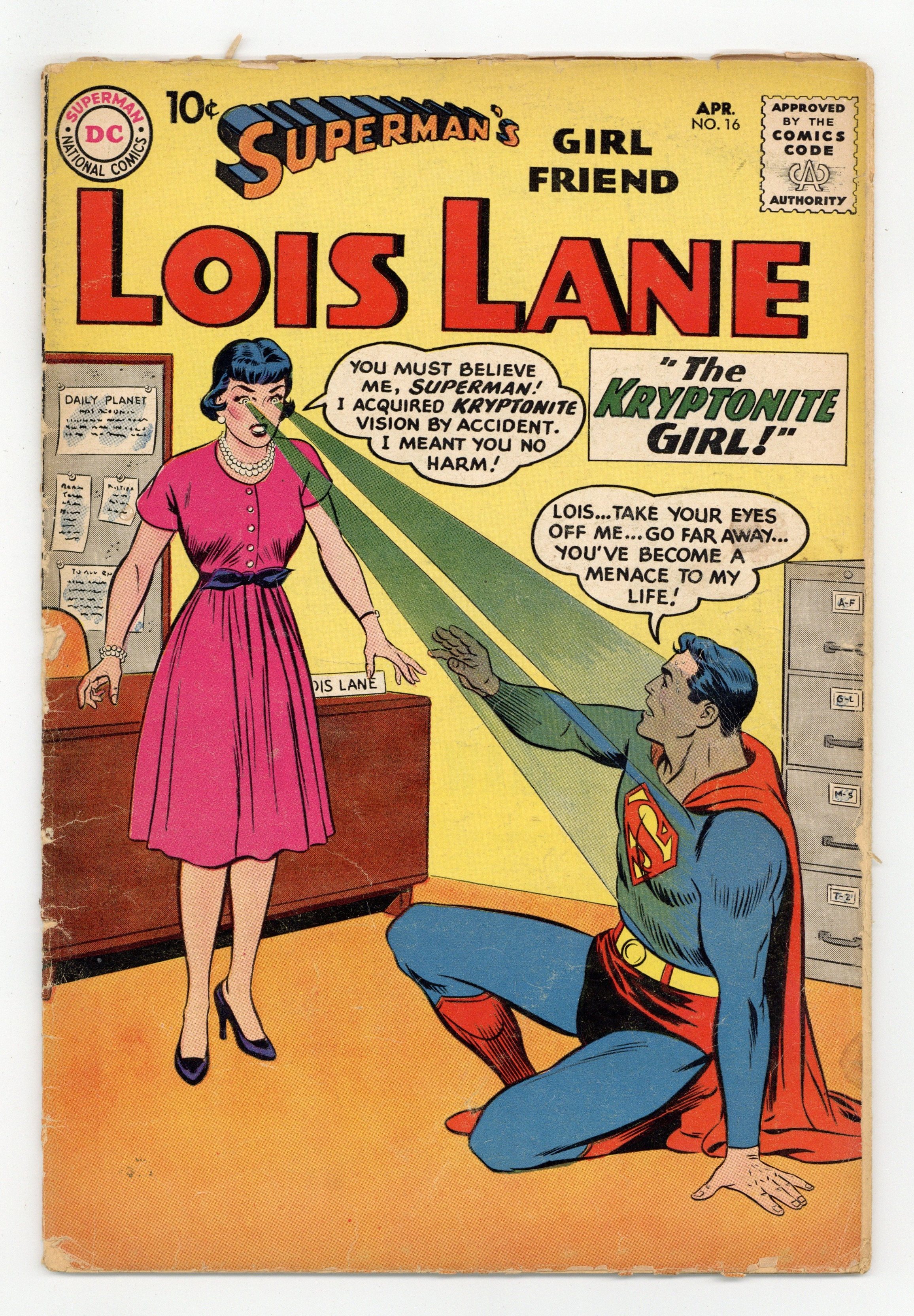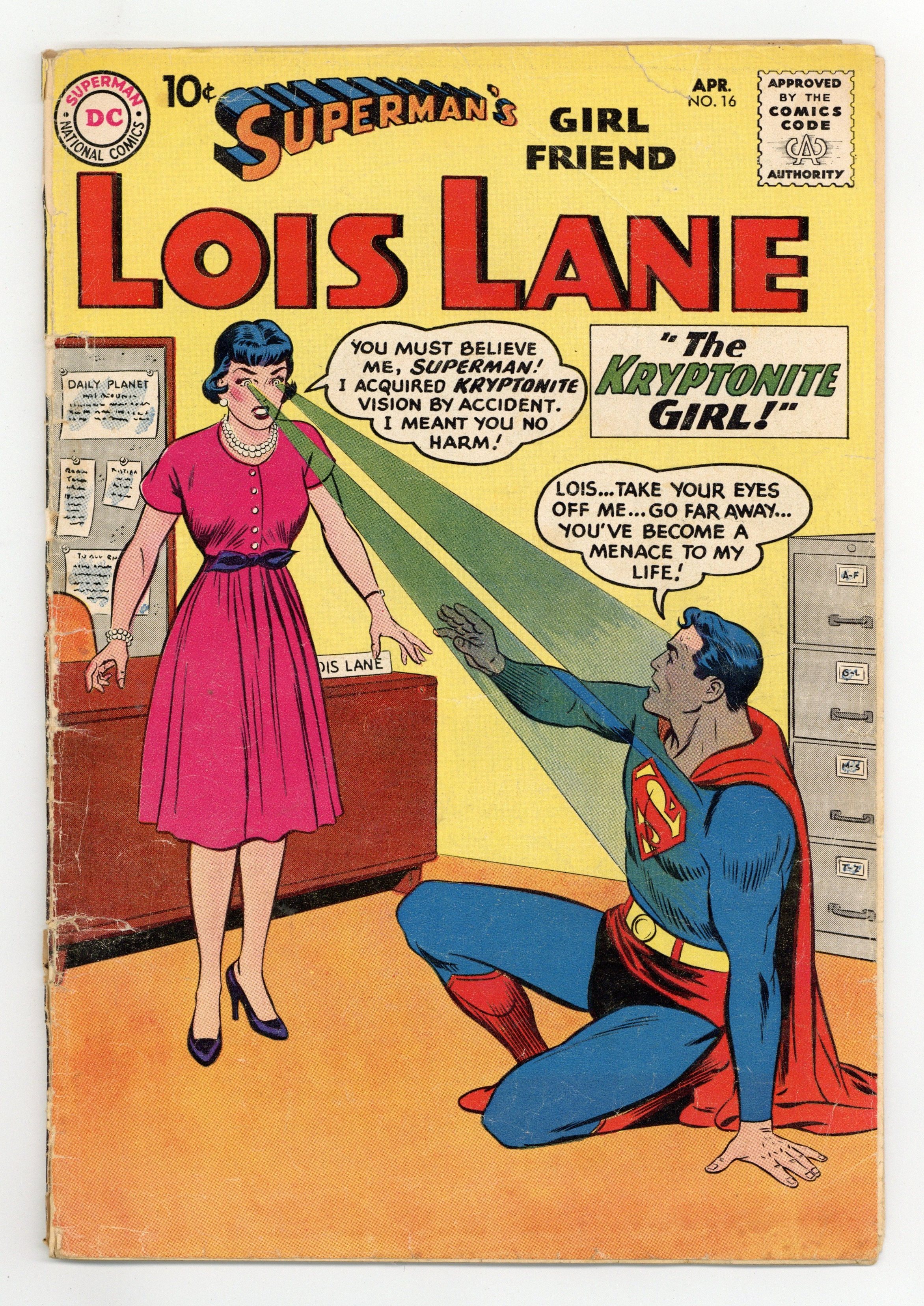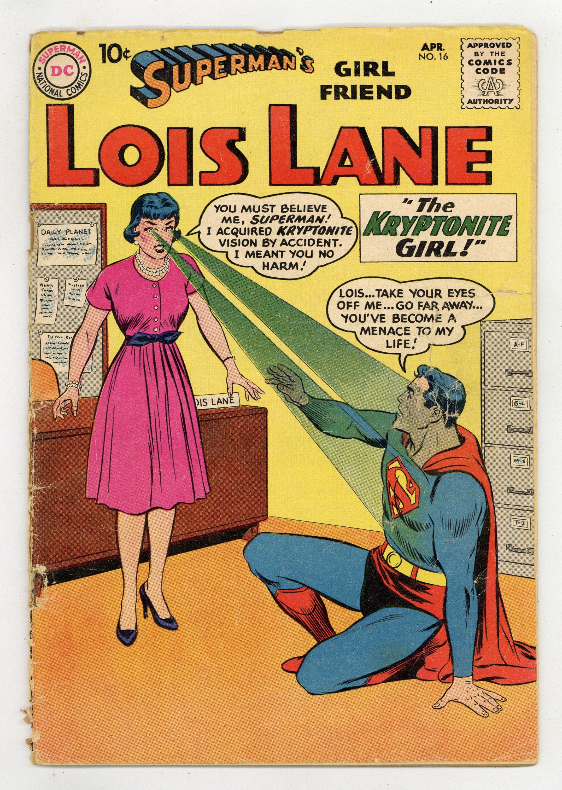 Cover pencils by Curt Swan, inks by Stan Kaye. Lois Lane's Signal-Watch!, art by Kurt Schaffenberger; Superman gives Lois a signal watch, and she drives him crazy calling about stupid things. The Mystery of Skull Island!, script by Robert Bernstein, art by Kurt Schaffenberger; Perry has Clark and Lois disguise themselves as a butler and maid in order to spy on Hollywood movie star Carlos Floyd. The Kryptonite Girl!, script by Jerry Siegel, art by Kurt Schaffenberger; ois disobeys Superman's warning, opens a strange box from outer space and gets Kryptonite vision. 36 Pages, Full Color. Cover price $0.10.