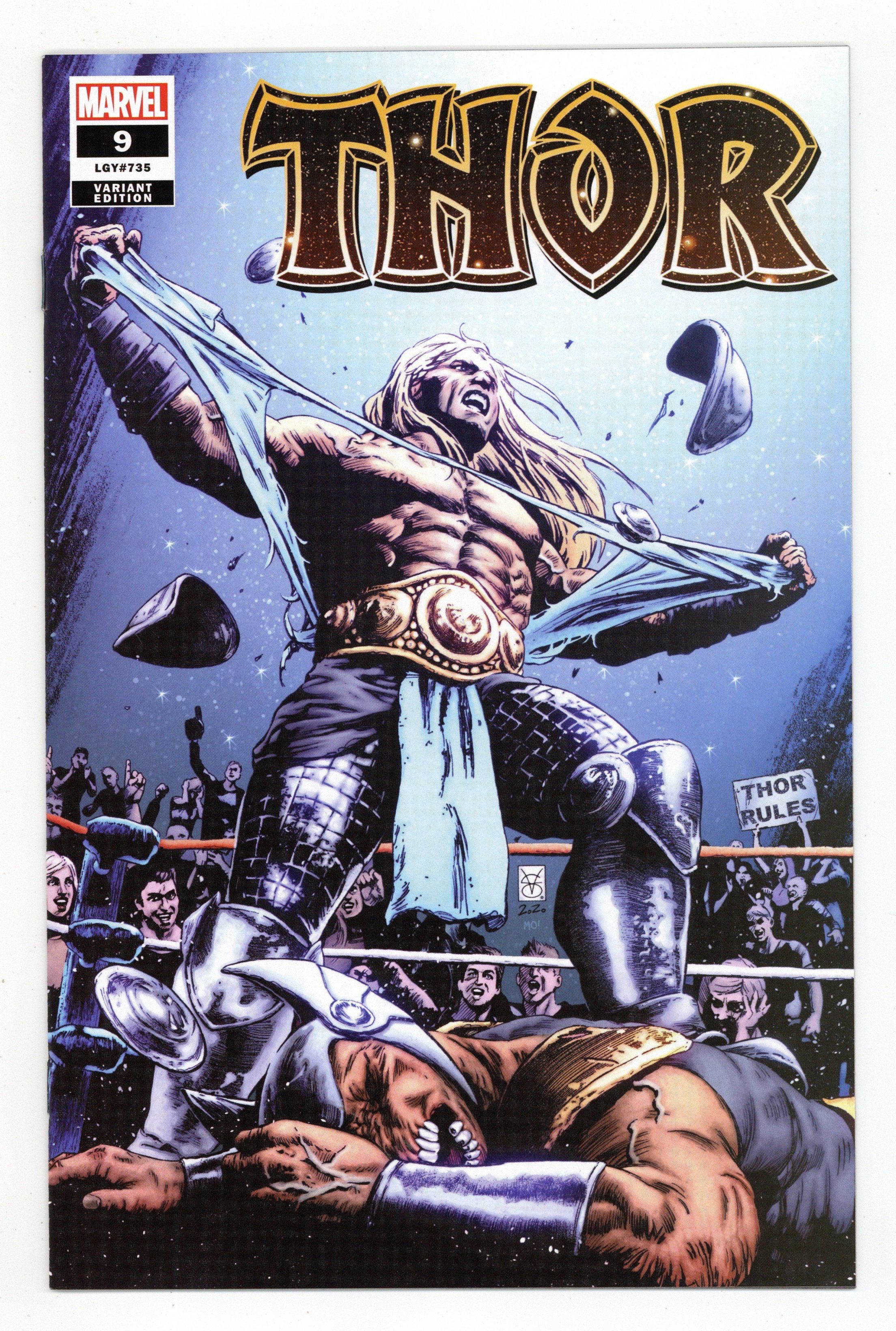 Tags: Marvel Legacy Numbering: Thor (part 735), Thor$10.00Frankie's Comics and Golden Apple Comics exclusive cover by Valerio Giangiordano. Written by Donny Cates. Art by Nic Klein. THE RETURN OF DONALD BLAKE! The 'Prey' arc starts here! Once upon a time, a mortal man bore within him the spirit of a god. With a crack of his cane upon the ground, the Mighty Thor would appear! But it's been years since the King of Asgard required his human ward. Where has the good doctor been all this time - and what does his reappearance mean for the God of Thunder? Donny Cates and Nic Klein journey into a mystery left unsolved since 1962! 28 pages, full color. Rated T+