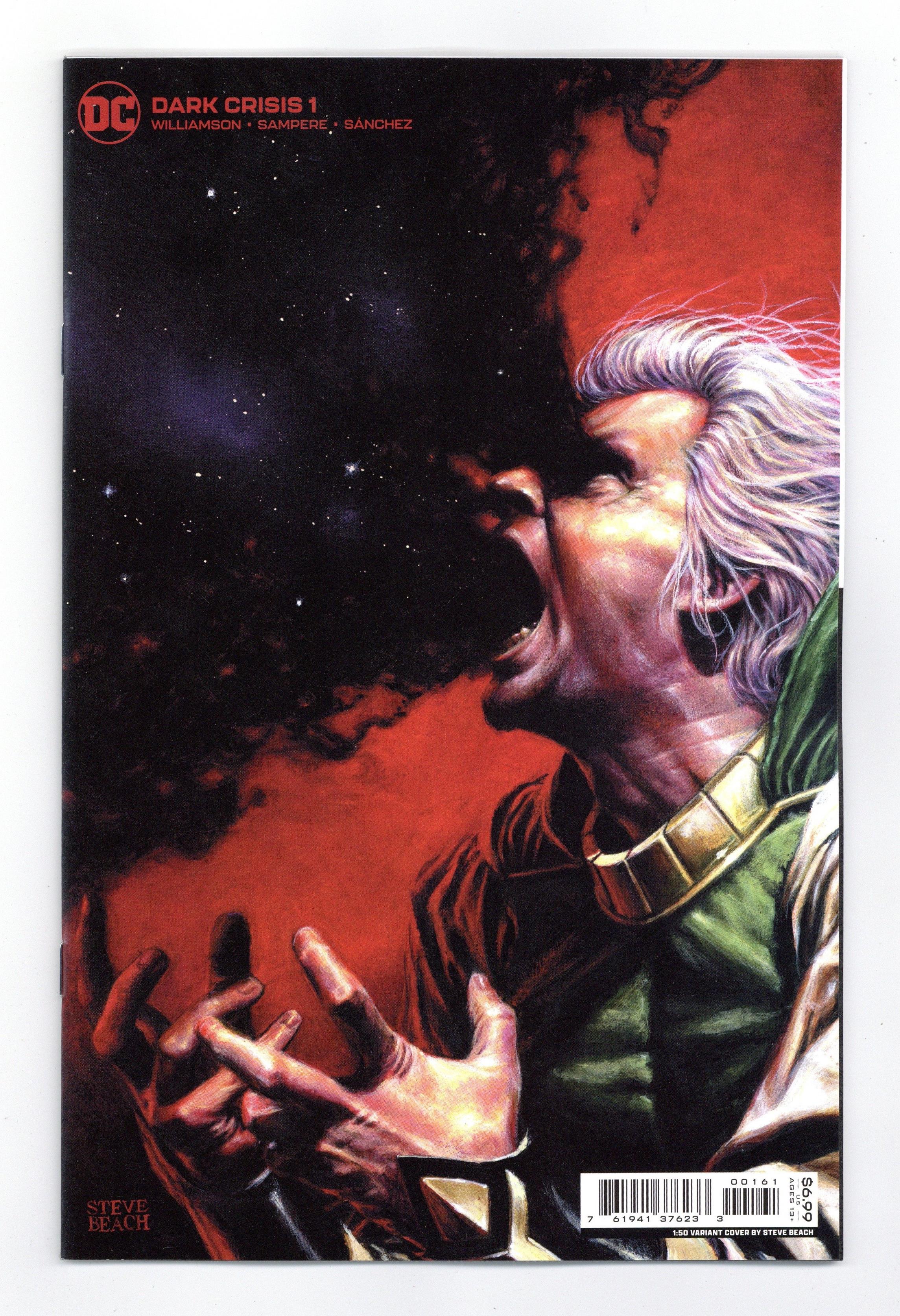 Tags: Dark Crisis (On Infinite Earths) (part 1)$2.65Limited 1 for 50 Retailer Incentive Variant Cover. Written by Joshua Williamson. Art by Daniel Sampere. Cover by Steve Beach. Crisis on Infinite Earths. Infinite Crisis. Final Crisis. And now...Dark Crisis! The epic event years in the making is finally here! Superman, Batman, Wonder Woman, and the rest of the Justice League are dead. The remaining heroes are left to protect the world from an onslaught of violent attacks by DCs greatest villains! Can the legacy heroes step out of the shadows of the classic heroes to form a new Justice League? And will that be enough to stop a darkness greater than anything theyve ever faced from destroying everything? Dont miss out on the first issue of the blockbuster event of the summer! 40 pages, full color. Rated T+ Cover price $6.99.