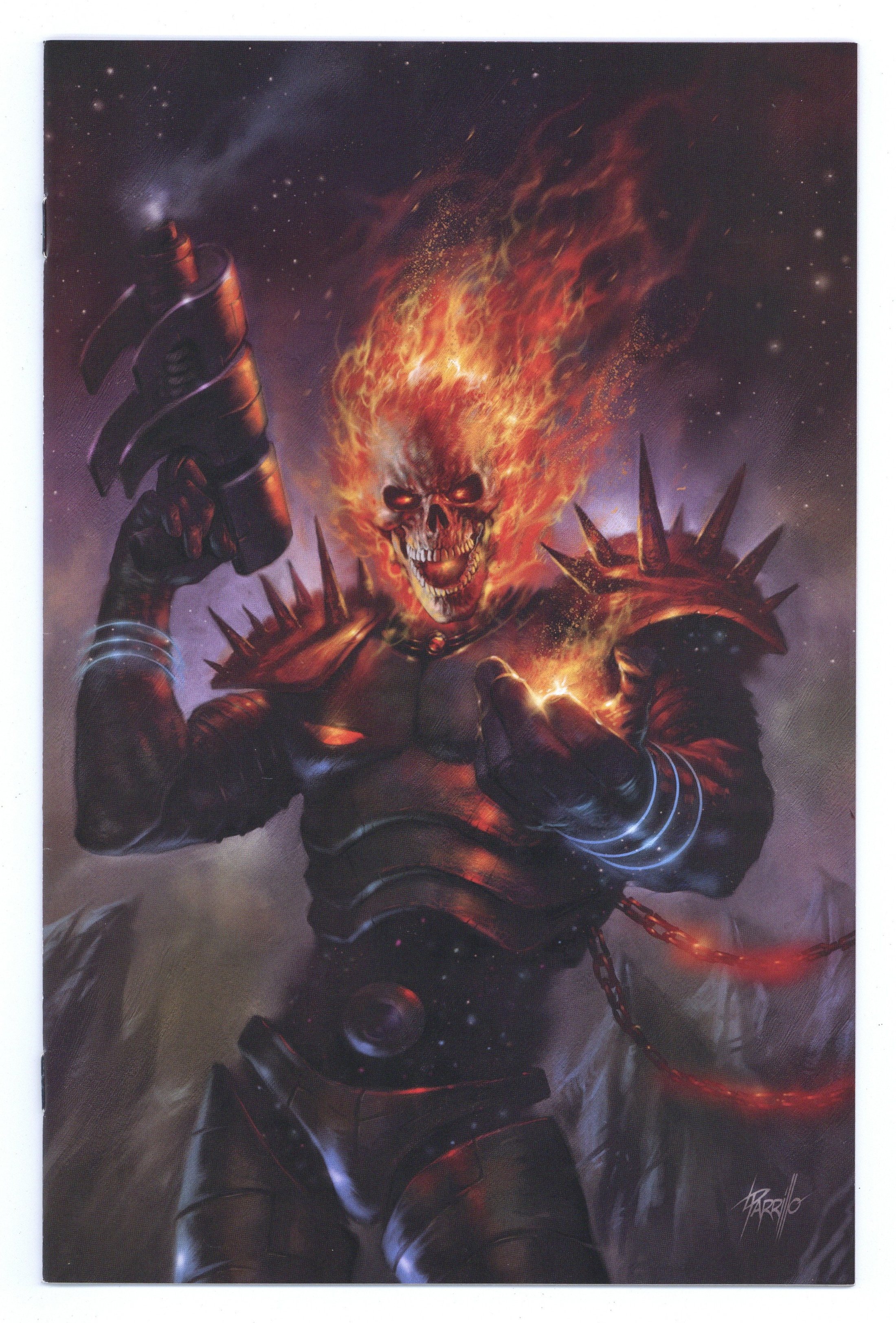 Tags: Ghost Rider, Punisher$25.00Unknown Comics exclusive virgin cover by Lucio Parrillo. Written by Donny Cates. Art by Dylan Burnett.. EXPLODING FROM THE PAGES OF THANOS! Frank Castle was the Punisher. A deal with the devil made him Ghost Rider. A deal with Galactus made him cosmic. A deal with Thanos made him…DEAD?!? Not to worry, he's coming back, and he's got a plan to make the universe a better place that's going to lead him into an even CRAZIER adventure than he's ever been in! Join hot new comic (and cosmic?) writer Donny Cates (THANOS, DOCTOR STRANGE) as he pushes his wildest creation past the breaking point! 36 pages, full color. Rated T+