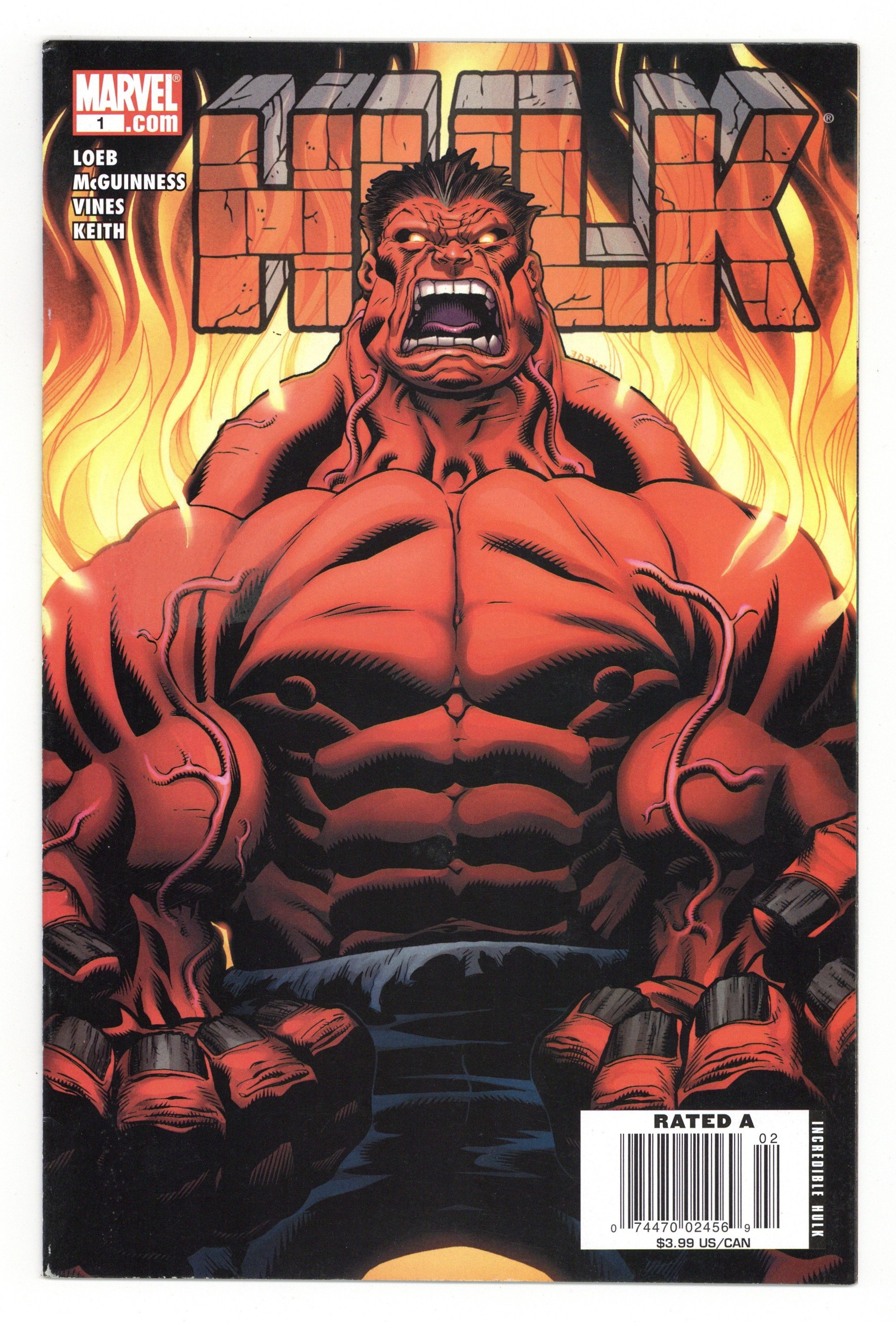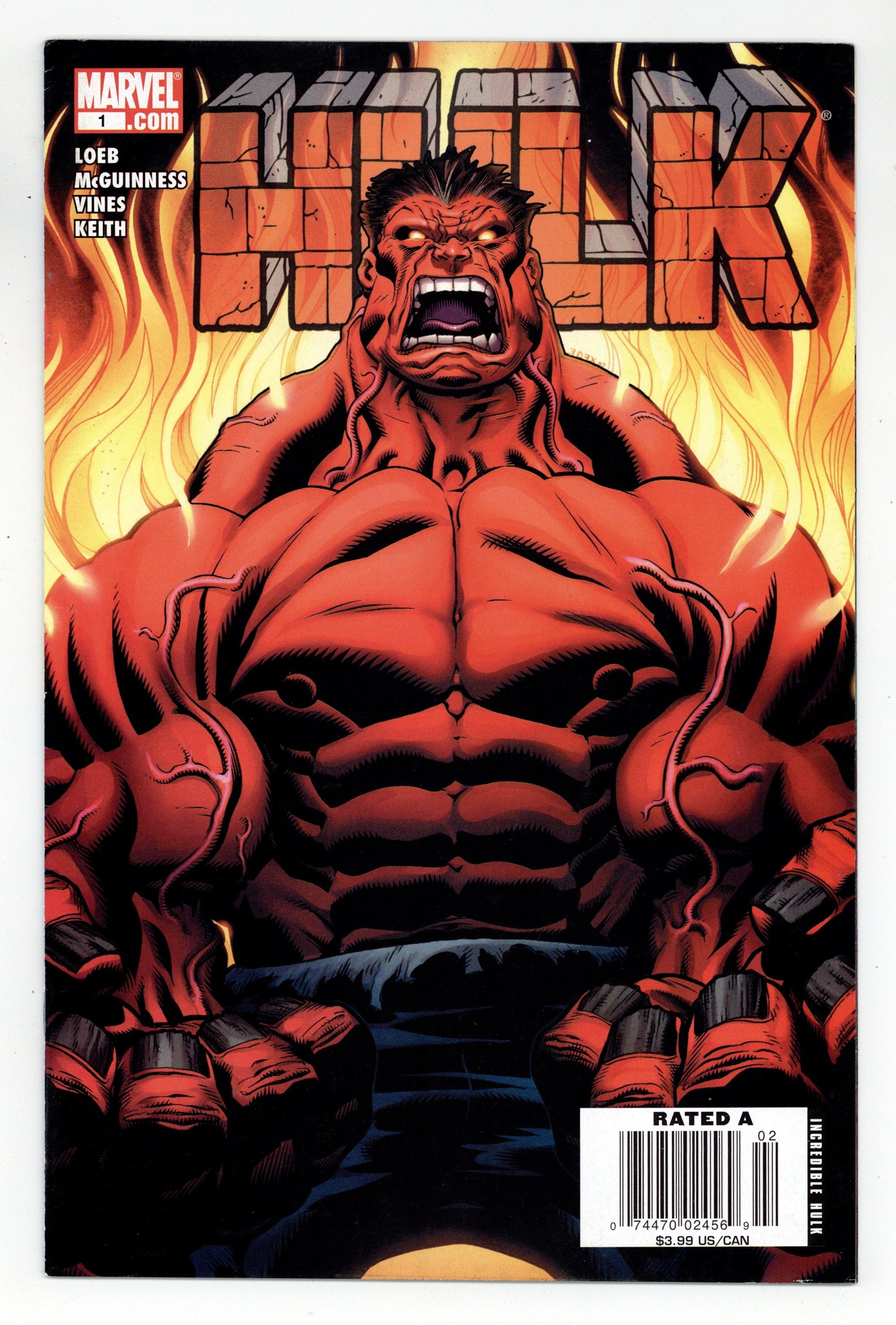 Newsstand Edition with $3.99 cover price. Written by JEPH LOEB Pencils & Cover by ED MCGUINNESS. Superstars JEPH LOEB and ED MCGUINNESS will change the way you see THE HULK! In this startling origin epic, the breathtaking events that ended World War Hulk rocket into this brand-new Hulk title. When one of The Hulk's oldest cast members is murdered, everyone turns to the team of IRON MAN, SHE-HULK and LEONARD SAMSON to solve the grizzly case. All the evidence points to the Hulk as the killer-but {CLASSIFIED}! Join us for a brand--new story and a brand-new team who loves the Hulk as much as you do! Cover price $2.99.