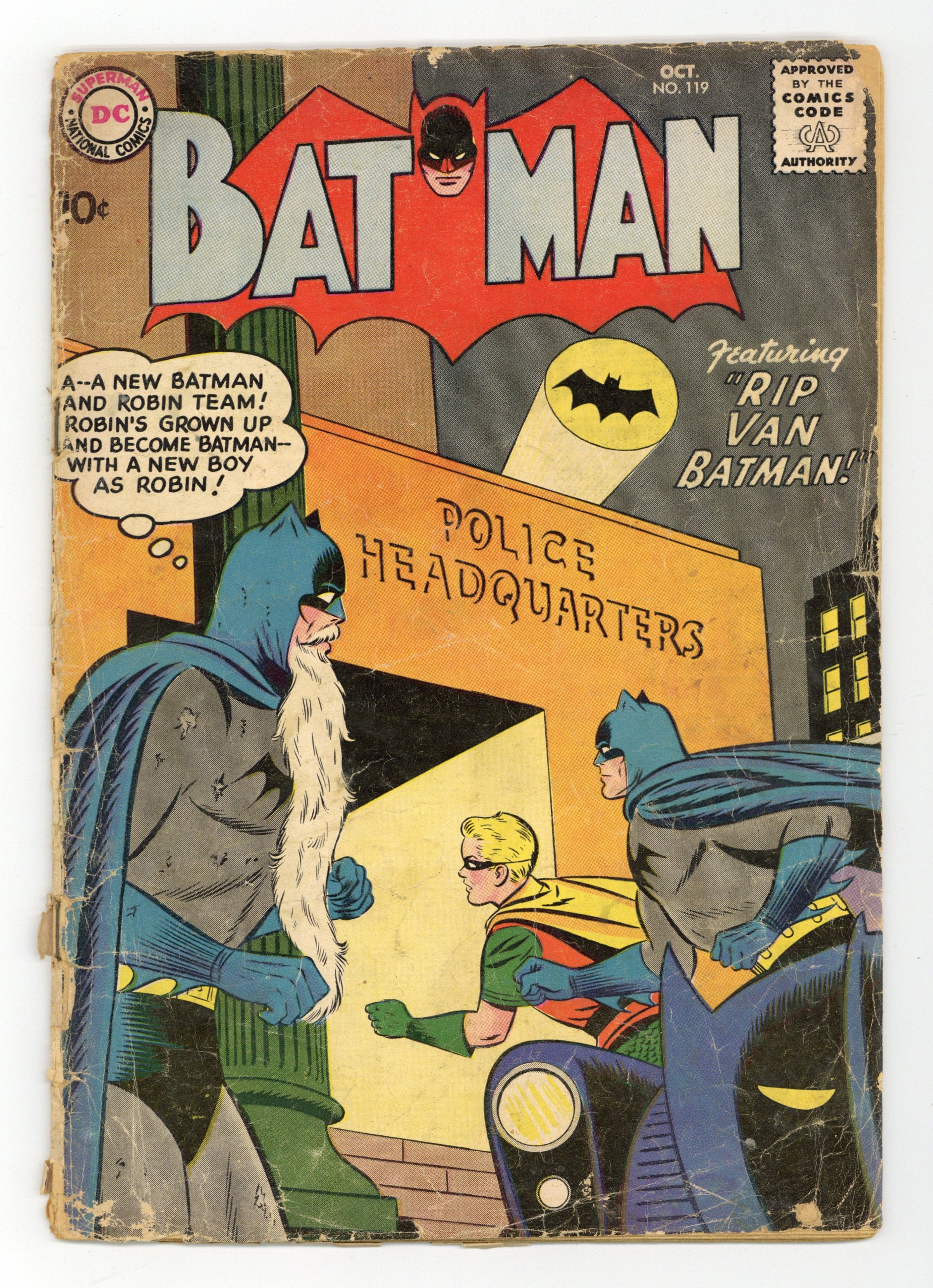 Tags: Batman$37.00- 5" cumulative spine split. Cover detached at one staple. Water damage.