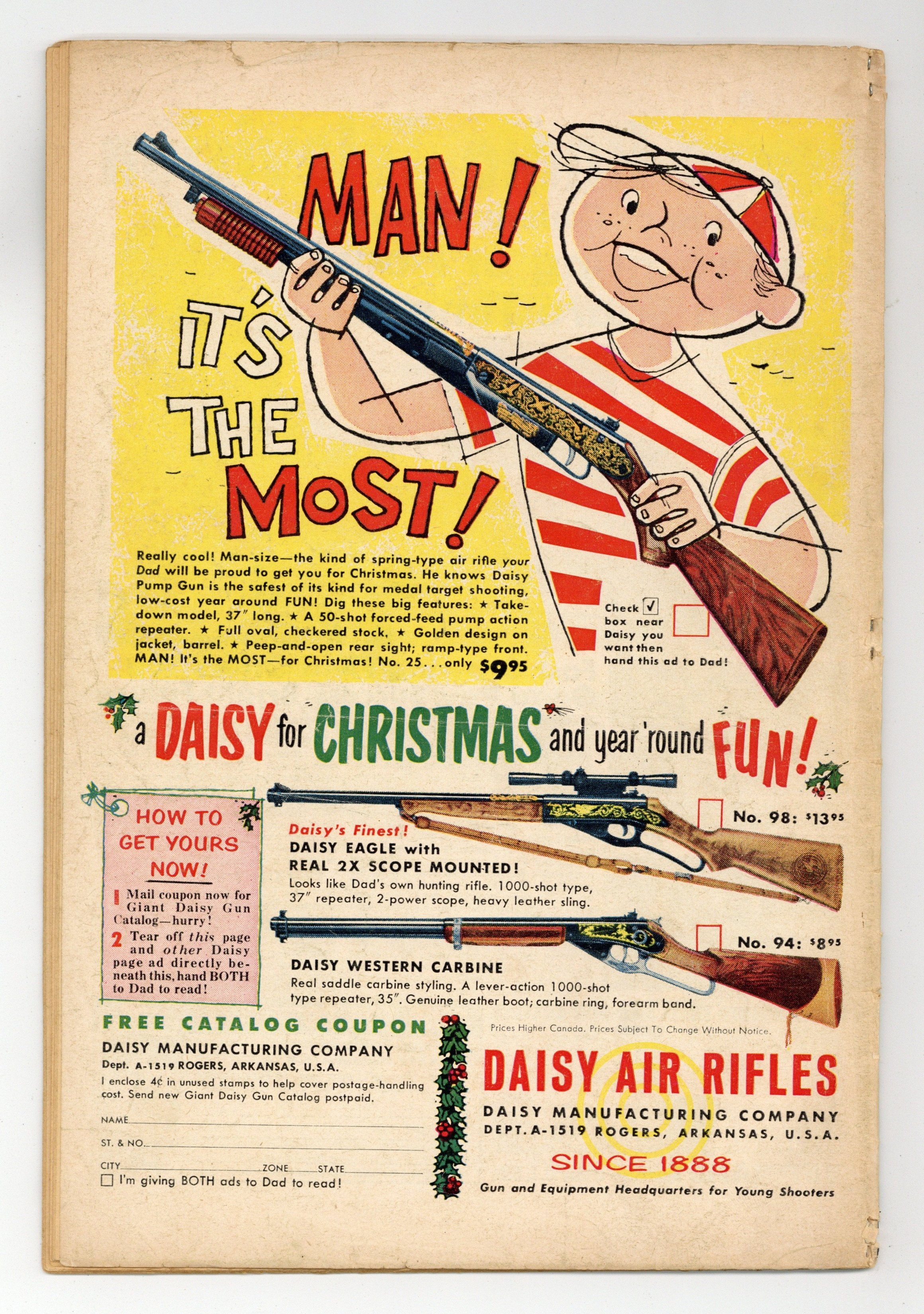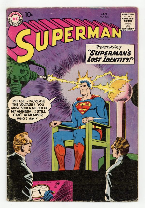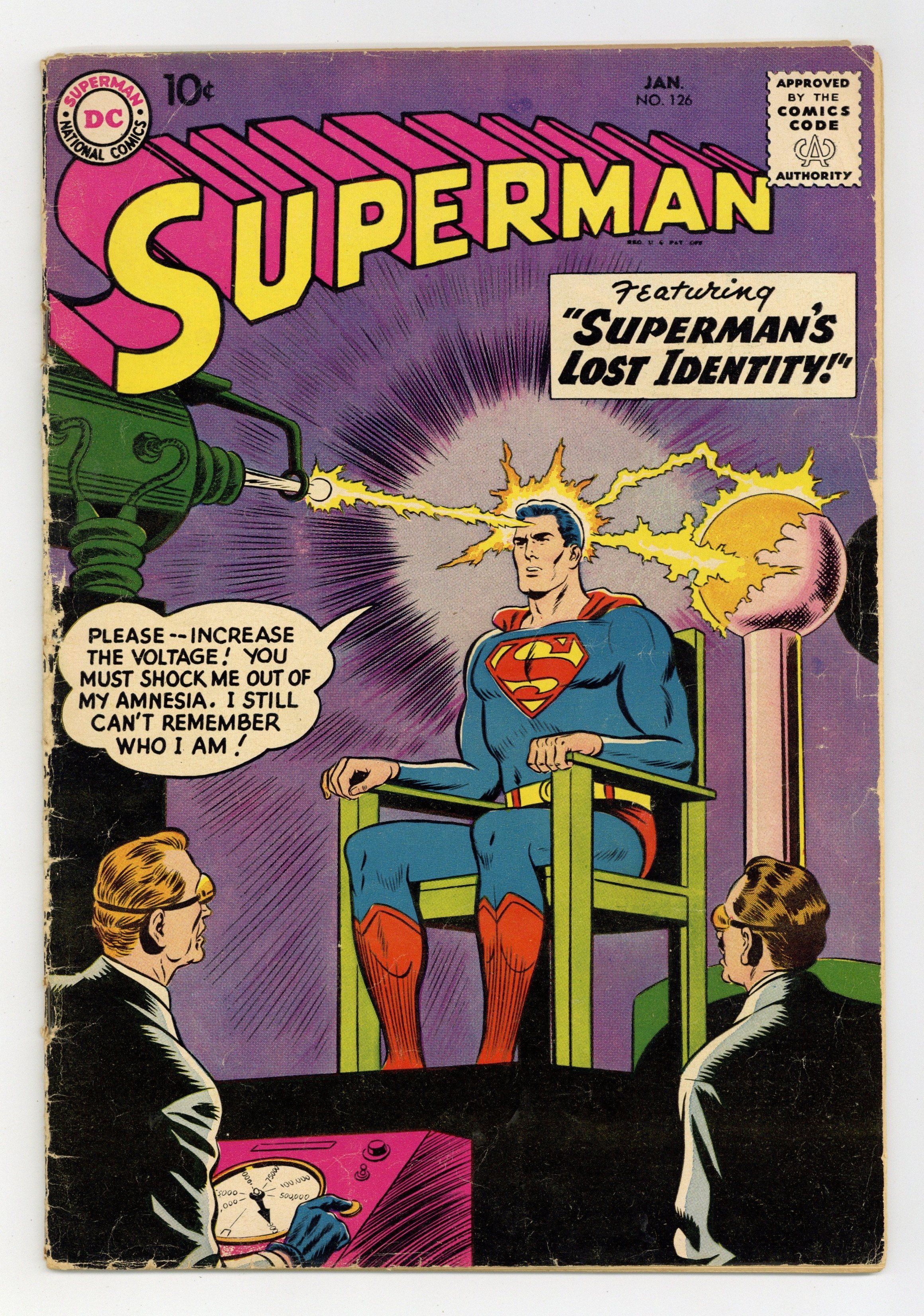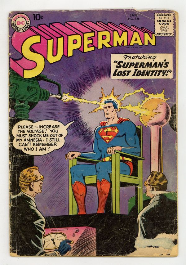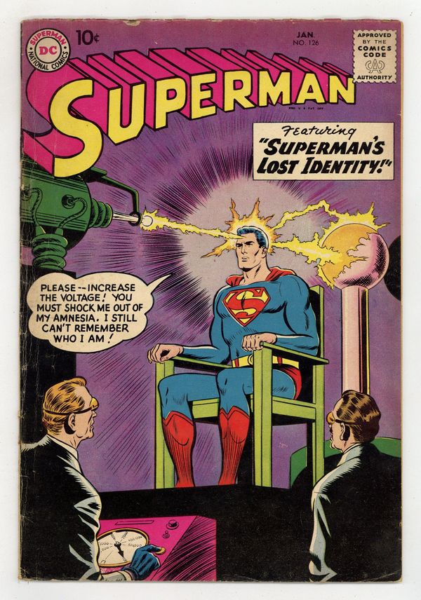Cover pencils by Curt Swan, inks by Stan Kaye. Superman's Hunt for Clark Kent!, pencils by Wayne Boring, inks by Stan Kaye; When Superman loses his memory, he adopts the persona of Clarence Kelvin and takes a job at the Daily Planet while he tries remember his true identity. The Spell of the Shandu Clock, script by Jerry Coleman, pencils by Wayne Boring, inks by Stan Kaye; Superman pretends to be under the influence of a mystical clock in order to make the Fallon Gang think he is helpless against their new weapon. The Two Faces of Superman!, script by Jerry Coleman, art by Kurt Schaffenberger; When Superman sees Lois get out of a date by making herself look ridiculous, he changes his appearance to teach her a lesson. 36 Pages, Full Color. Cover price $0.10.