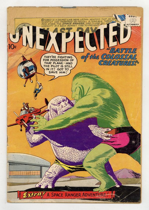 Cover art by Bob Brown. The Last Days of Planet Mars!, art by Jim Mooney. Peter Puptent Explorer humor page by Henry Boltinoff. The Lighthouse In The Sky, art by Howard Purcell. Scientific Word Origins fact half-page by Mort Drucker. The Super-Insect Army text story. Battle of the Colossal Creatures, art by Bob Brown; two giant creatures battle over an airplane. 36 Pages, Full Color. Cover price $0.10.