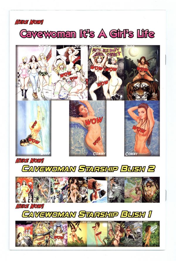Published Aug 2017 by Amryl Entertainment.$25.00Special Edition Cover E by Budd Root - Limited to 450 copies. Story, Art by Devon Massey. When Cavewoman best friend Carrie Fulton decides that Meriem has spent most of her life fighting tooth and nail to survive in the savage jungle, she vows to make sure Meriem has all of the experiences she missed out on in town. Join Carrie, Meriem, and Mona Lansing as they paint the town red and have the time of their lives. Shopping spree! Slumber party with pizza! Pillow fights! Bar hopping! Flirting! Bikini contest in their Oasis outfits! Look out Marshville, it's Ladies' Day and Night Out and Meriem has some catching up to do! 24 pages, B&W, Mature Readers. Cover price $3.99.