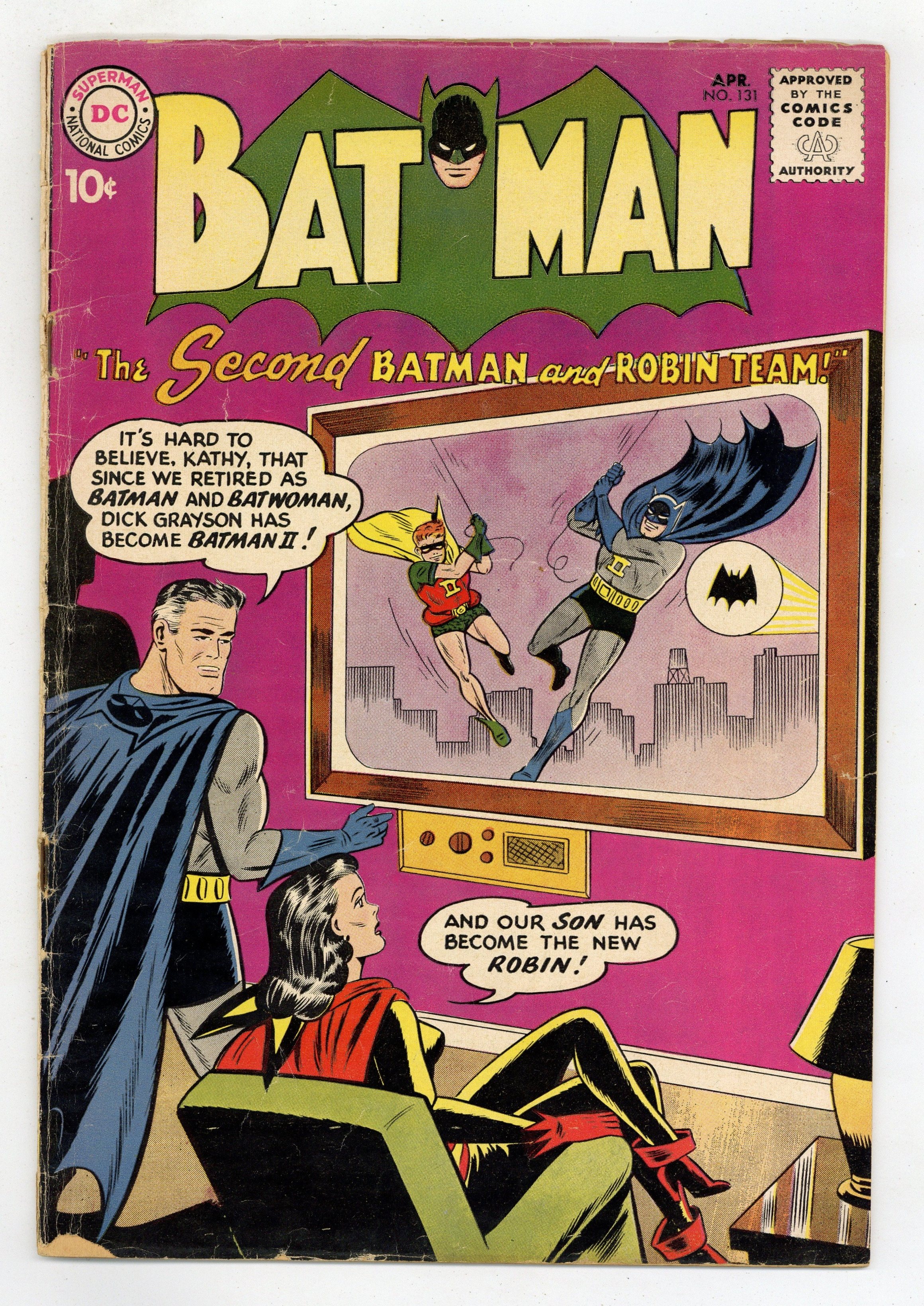 Cover by Sheldon Moldoff. "The Dog that Betrayed Batman," script by Bill Finger, pencils by Sheldon Moldoff, inks by Charles Paris; Wounded and suffering from amnesia, Bat-Hound befriends a hermit and blind man, but hates the sight of anyone in a mask...including Batman himself! Half-page "Police Woman!" non-fiction story. Aloha... Hawaii! public service announcement, script by Jack Schiff, art by Bernard Baily. "The Case of the Deadly Gems," script by Bill Finger, pencils by Dick Sprang, inks by Charles Paris; Jeweler Claber, of Gotham Gem Company, is murdered and his death blamed on criminal Ted Greaves by the man's three partners; However, Batman discovers the partners are actually involved in a smuggling racket and seek to throw suspicion off themselves by blaming Greaves. One-page Casey the Cop story by Henry Boltinoff. "The Second Batman and Robin Team," script by Bill Finger, art by Sheldon Moldoff; Alfred tests out his new typewriter by writing an imaginary tale of Robin growing to manhood and becoming the new Batman, adopting a new partner as Robin, and taking on a gang of crooks. 36 Pages, Full Color. Cover price $0.10.