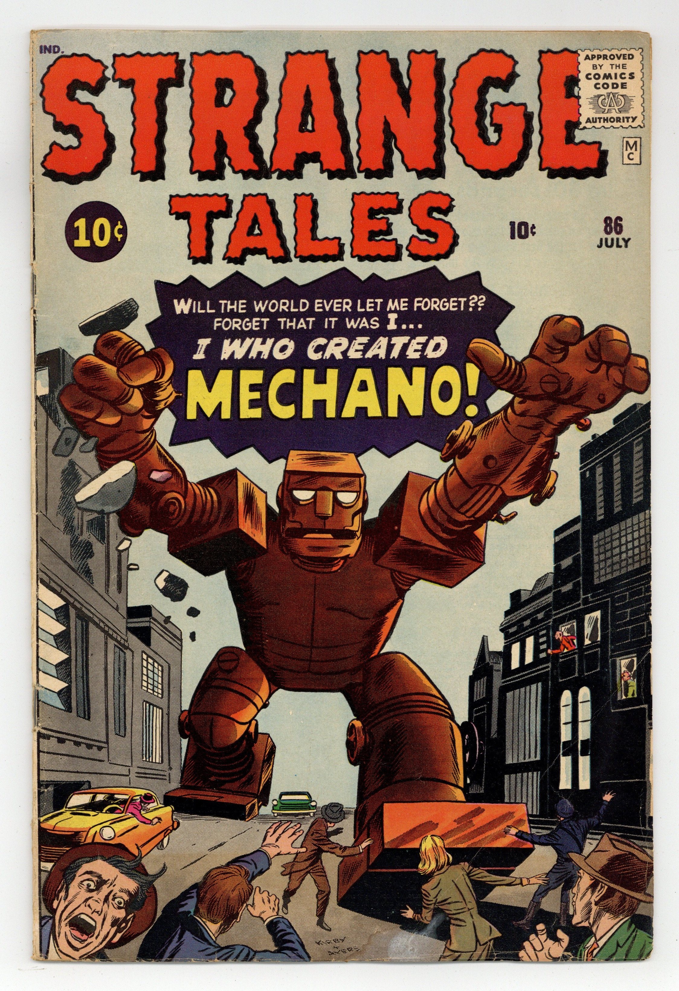Cover pencils by Jack Kirby, inks by Dick Ayers. "I Created Mechano!", pencils by Jack Kirby, inks by Dick Ayers; A giant robot goes out of control and attacks people, but its creators try to prevent the authorities from destroying it; They encounter a group of alien invaders who were not prepared to face a robot and are driven away. "Discovery" text story, art by Joe Maneely. "Georgie's Globe!", art by Steve Ditko; A clumsy boy has a globe which seems to mirror damage done to it in the real world; When the globe is smashed a mysterious force intervenes and a faraway dead world explodes. "Beware of Meeks Bringing Gifts!", pencils by Jack Kirby, inks by Sol Brodsky; Aliens arrive on Earth and give Earth advanced devices that eliminate poverty and conflict; A journalist forces one of them to admit at gunpoint on the air that they are planning an invasion. 36 pgs., full color. Cover price $0.10.