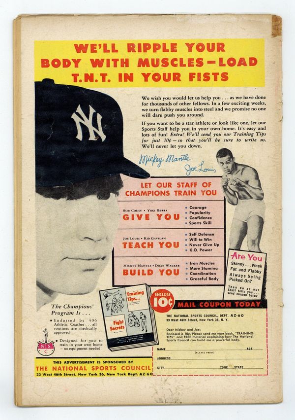 Starts Dec 8 Cover by Sheldon Moldoff. "The Martian from Gotham City," script by Bill Finger, pencils by Sheldon Moldoff, inks by Charles Paris; An actor suffering amnesia believes that he is a Martian and at war with the world; When three criminals discover this, they trick the actor into helping them. One-page Warden Willis story by Henry Boltinoff. "The Three Faces of Batman," script by Bill Finger, art by Sheldon Moldoff; While trying to capture Big Jim Masters, Batman is subjected to an scientific experimental device that makes him unable to fight crime when he hears a siren or bell. One-page Casey the Cop story by Henry Boltinoff. "The Lair of the Sea-Fox," script by Bill Finger, art by Sheldon Moldoff; The Sea-Fox cleverly uses underwater waterways beneath Gotham to commit his crimes and the Caped Crusaders must find a way to stop him. 36 Pages, Full Color. Cover price $0.10.