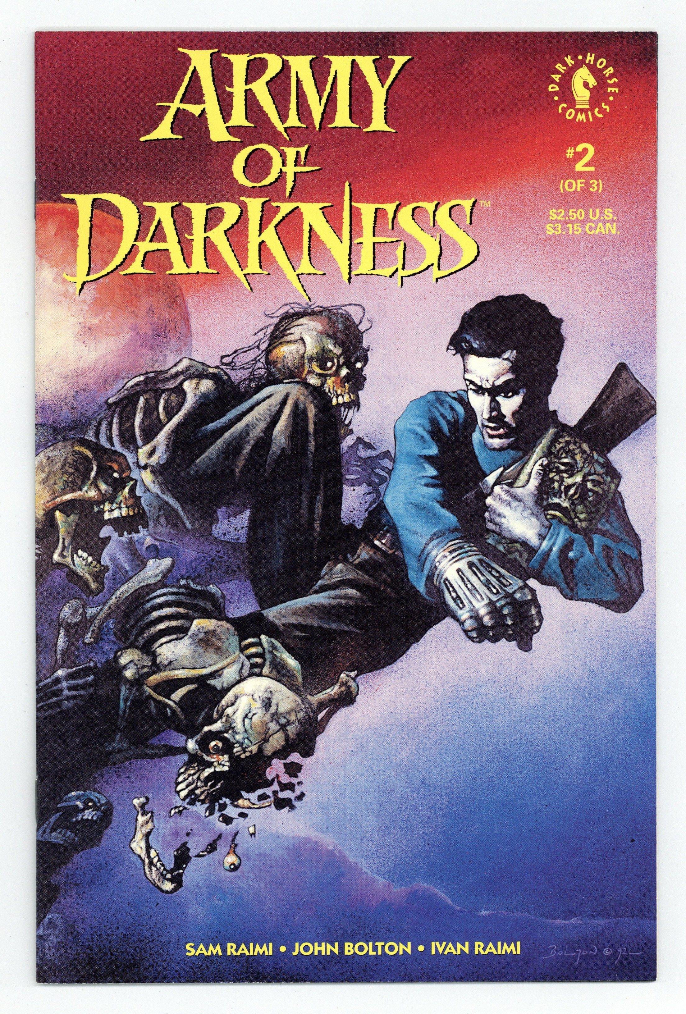 Written by Sam Raimi and Ivan Raimi. Art and cover by John Bolton. Ash, the hero of Sam Raimi's cult-classic film Evil Dead II, must battle the most dangerous foe of all -- himself -- in order to save the living from the evil dead! 32 pages, FC. Cover price $2.50.