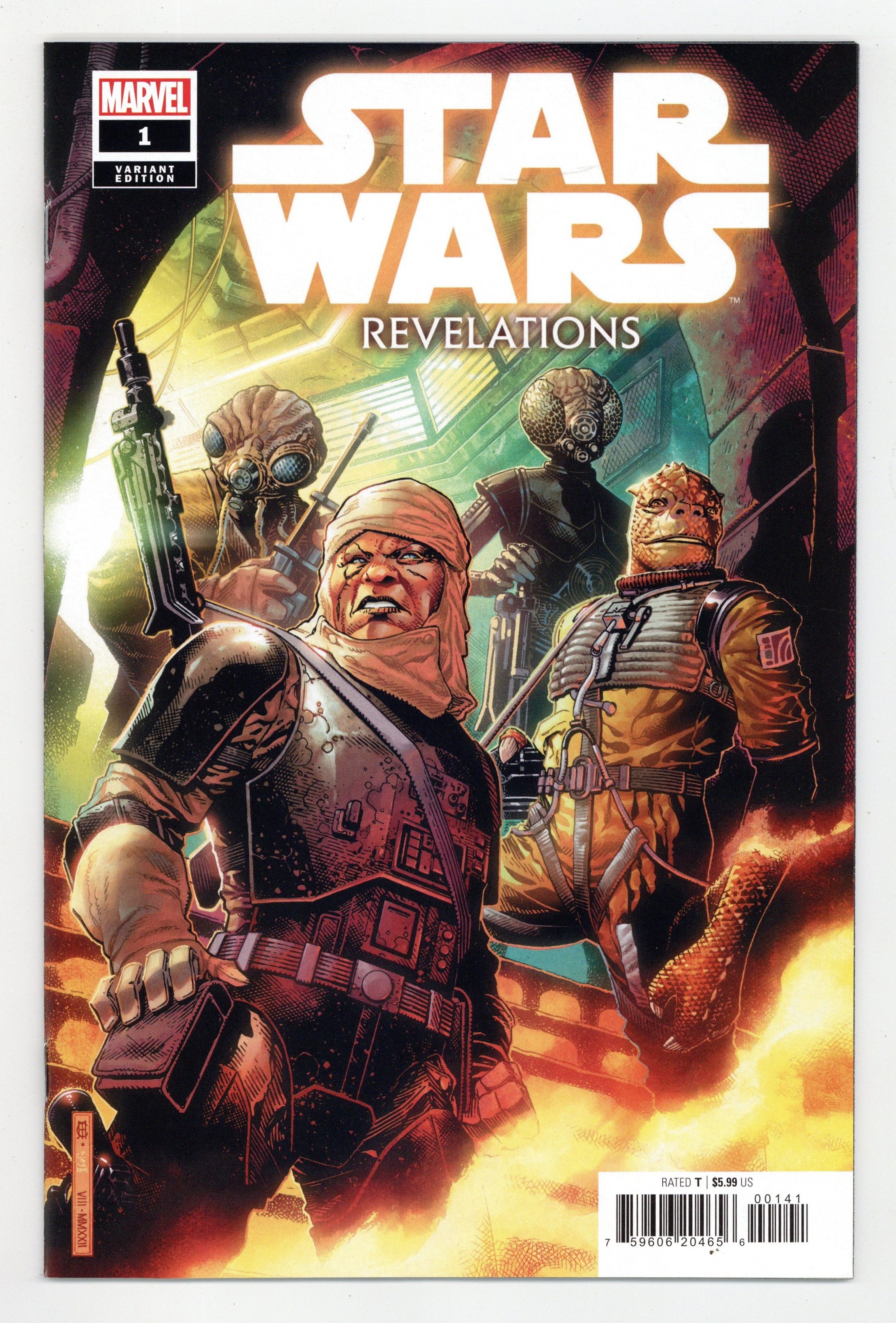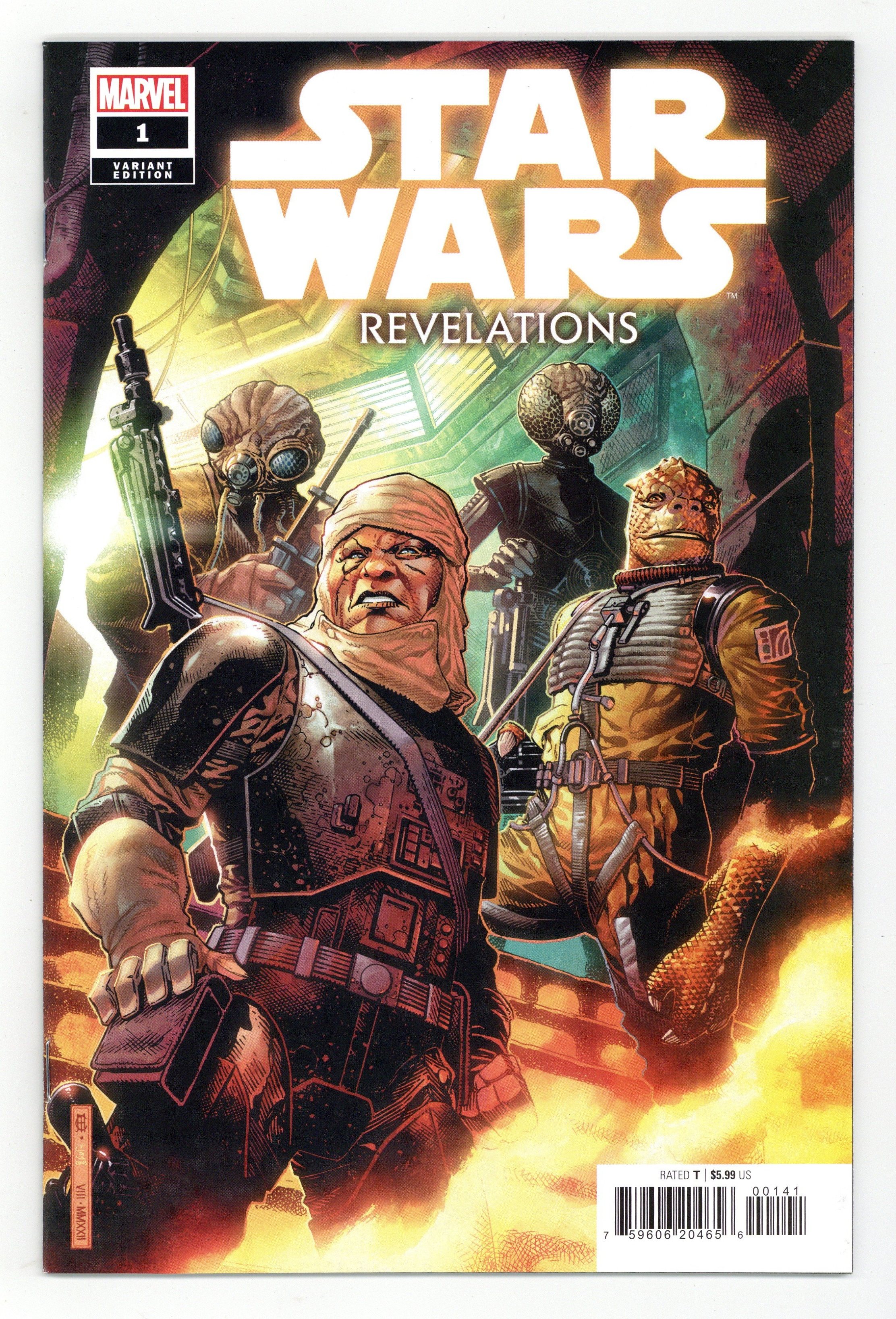 Limited 1 for 50 Retailer Incentive Variant Cover. Written by Marc Guggenheim. Art by Salvador Larroca; Marvel Various. Cover by Jim Cheung. THE CAN'T-MISS STAR WARS ISSUE OF THE YEAR! After WAR OF THE BOUNTY HUNTERS came CRIMSON REIGN…now in the midst of HIDDEN EMPIRE, Qi'ra has shaken the galactic landscape to its core! …But what lies beyond for the Rebellion? For the Empire? What role do the bounty hunters play? And what is happening to Doctor Aphra? Witness the next step in the legacy of heroes and scoundrels in the galaxy far, far away as MARC GUGGENHEIM (HAN SOLO & CHEWBACCA) is joined by a ragtag team of artists to bring you an explosive tale you won't soon forget! The path to the future of STAR WARS starts here! 48 pages, full color. Rated Teen Cover price $5.99.