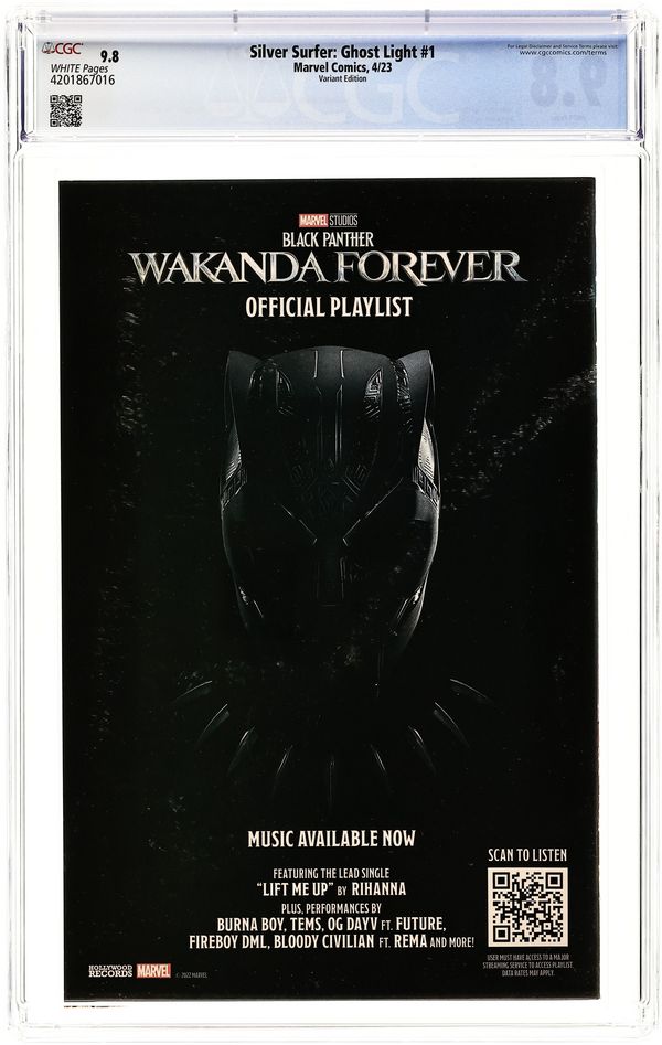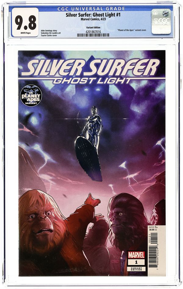 Written by John Jennings. Art by Valentine De Landro. Cover by Taurin Clarke. Toni Brooks and her family have moved into the quiet town of Sweetwater. But nothing is quite what it seems in their new home. What mystery did Toni and her family unravel that would call upon the Sentinel of the Spaceways - the Silver Surfer?! And just who, or what, is GHOST LIGHT? Eisner Award winner JOHN JENNINGS and artist VALENTINE DE LANDRO (Bitch Planet) introduce a new Marvel super hero over 50 years in the making! 36 pages, full color. Rated T+ Cover price $4.99.