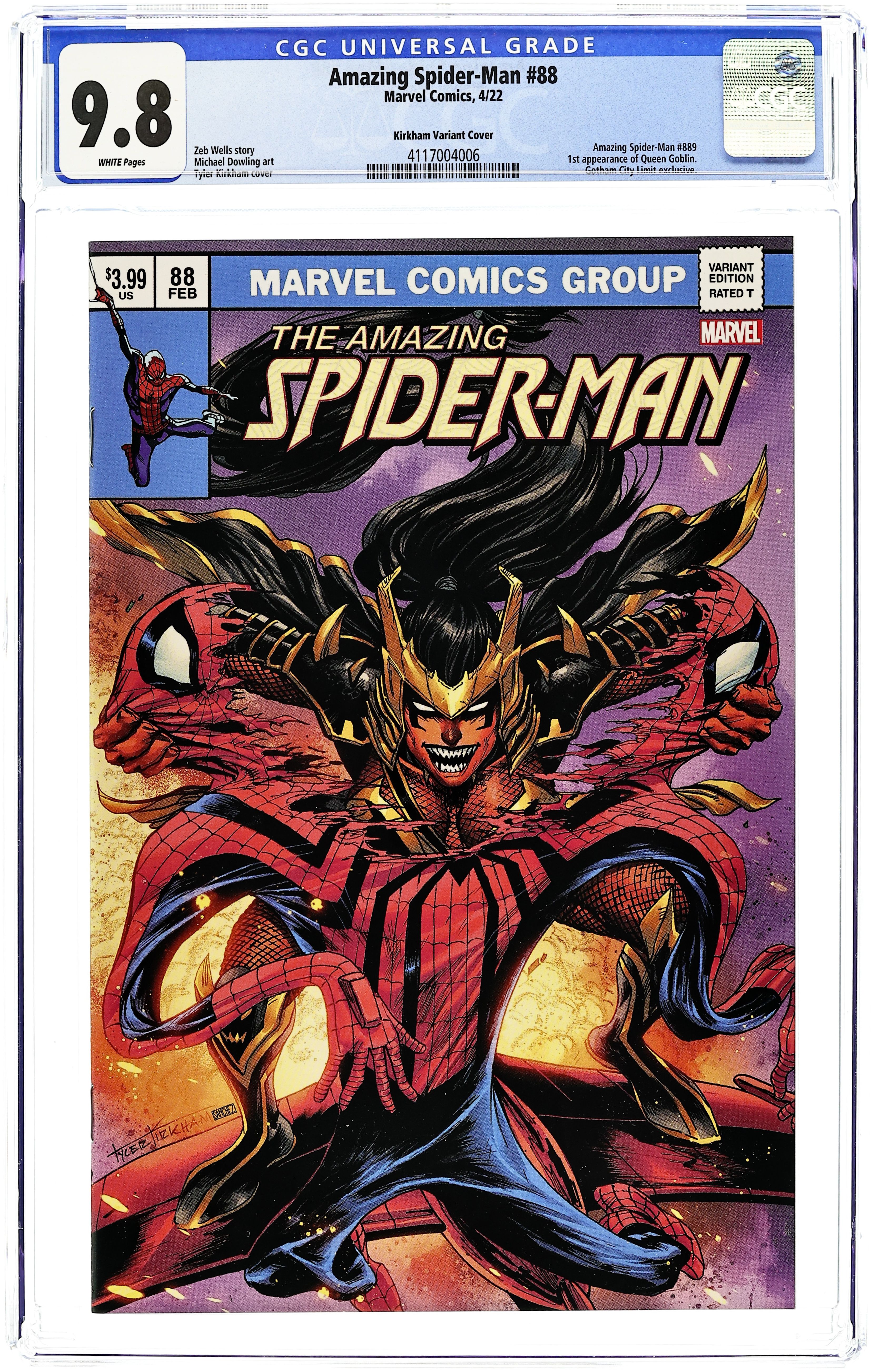 Gotham City Limit exclusive cover by Tyler Kirkham. Written by Zeb Wells. Art by Michael Dowling. Who is QUEEN GOBLIN?! For almost sixty years, Spider-Man has been defined by Goblins, and Ben Reilly has a brand-new one all his own. 28 pages, full color. Rated T