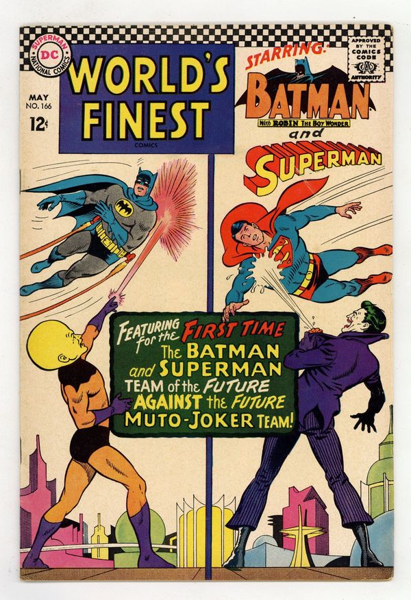 Cover pencils by Curt Swan, inks by George Klein. The Danger of the Deadly Duo! starring Superman and Batman, script by Jim Shooter, pencils by Curt Swan, inks by George Klein; When Muto teams with the Joker of 2967 to battle Superman, the last descendant of Batman takes up the cape and cowl to help Superman and get revenge against the Joker, who's father killed his father. The Genius With Super Powers--Editors' Round Table: Roy Raymond, TV Detective, script by Jack Miller, art by Ruben Moreira. 36 Pages, Full Color. Cover price $0.12.