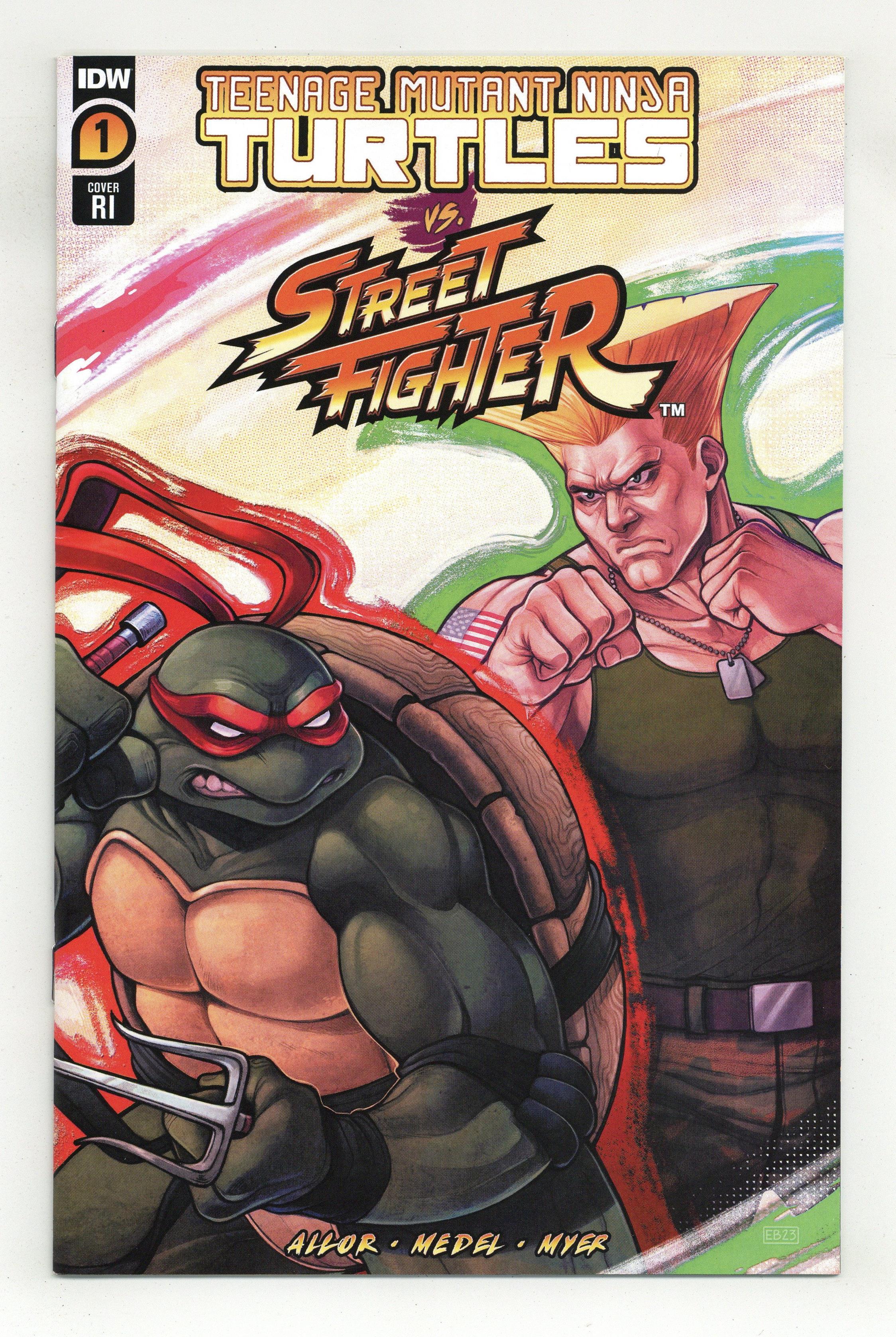 Published Jun 2023 by IDW Publishing.$14.00Limited 1 for 50 Retailer Incentive Variant Cover. Written by Paul Allor. Art by Ariel Medel. Cover by Elizabeth Beals. When a prestigious martial arts tournament invites fighters to travel to Atlantic City and test their skills, the Teenage Mutant Ninja Turtles jump at the chance to compete. But a big stage means big competition, and the world famous STREET FIGHTERS have shown up in force to prove the mettle of their PSYCHO POWERED fighting forms. As if thats not enough of a challenge, there are rumors of competitors disappearing and the identity of the contests benefactors is shrouded in mystery. Dont miss the matchups of your favorite fighters as the half-shell heroes face the likes of Ryu, Guile, Chun-Li, and more. TMNT Vs. Street Fighter kicks off a five-issue fight card of fury starting this May! 32 pages, full color. Rated M Cover price $3.99.