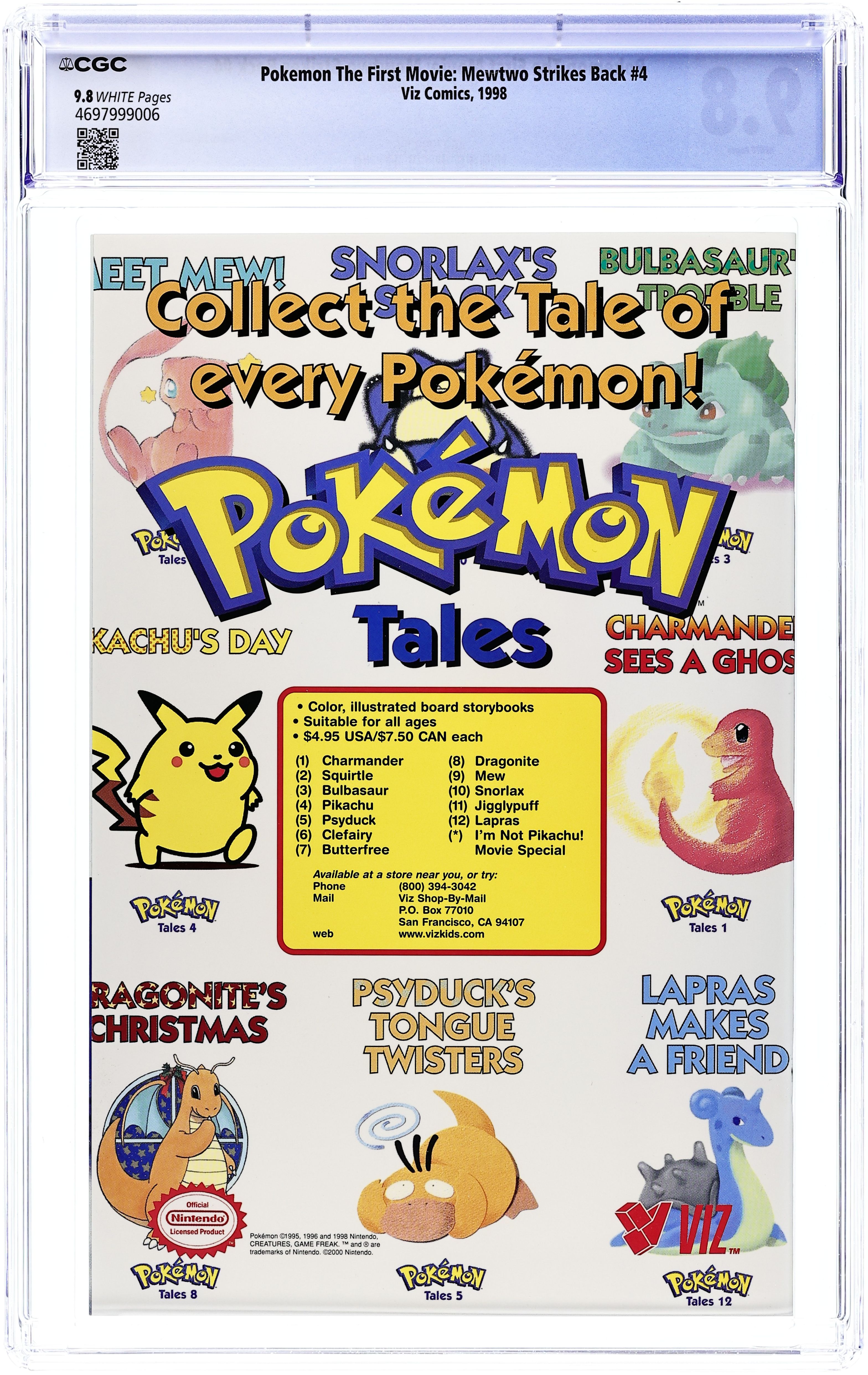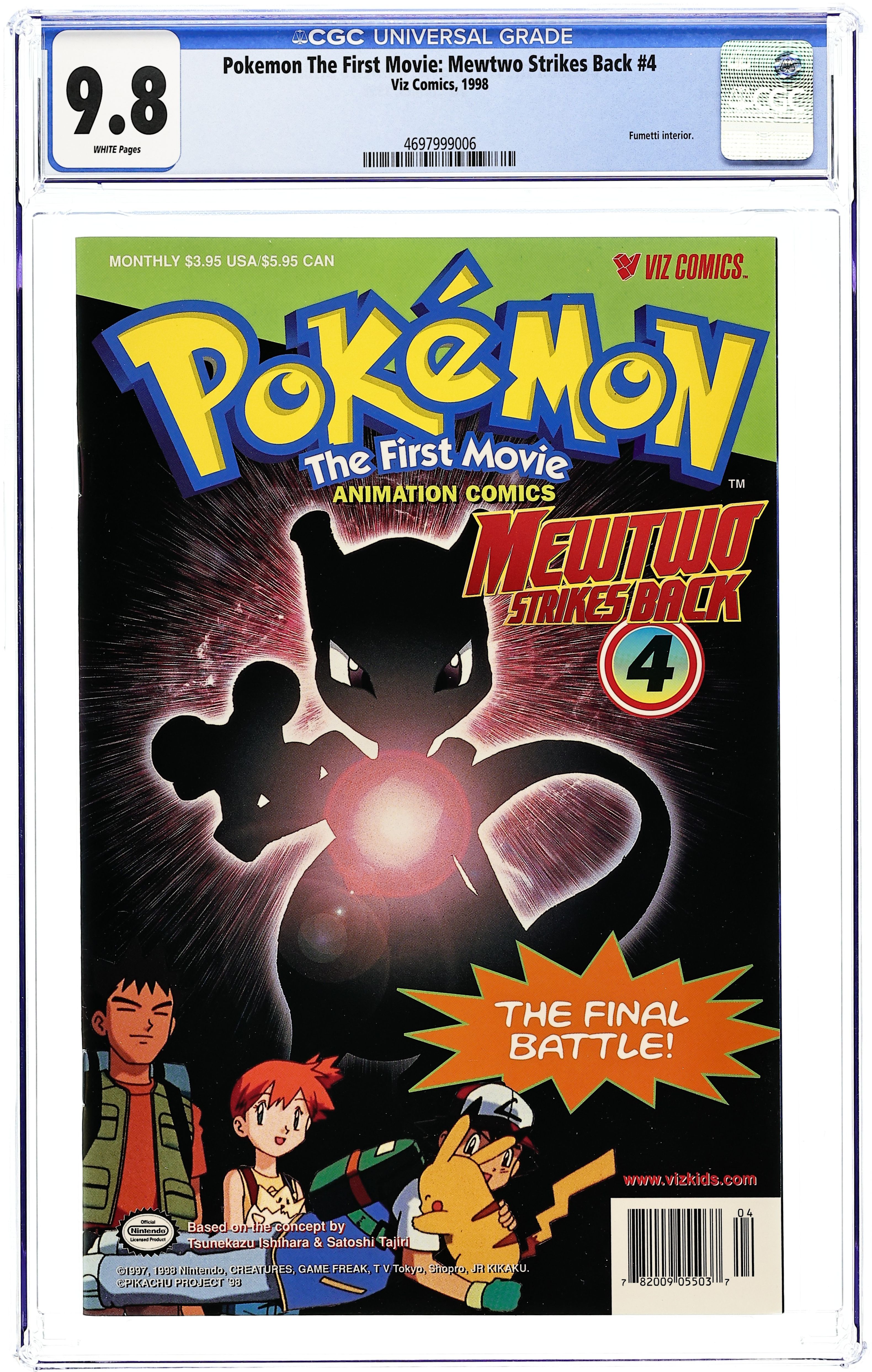 The official adaptation of the hit Warner Bros. film! The super clone Pokemon and their originals pair off in a great match, while Mew and Mewtwo have a fight of their own! And if Mewtwo wins, it will destroy the world! Will Ash be able to stop the madness? (CAUT: 3) NOTE: Not available outside North America, Puerto Rico, the U.K., Australia, and New Zealand. FC, 40pg (4 of 4) Cover price $3.95.