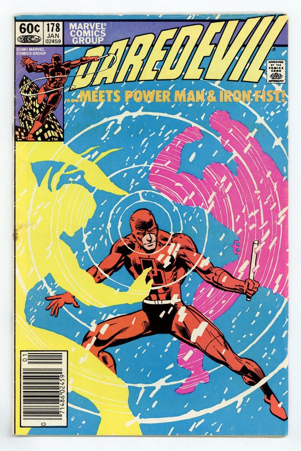Ends Dec 8 7:59 PM CST Bid History 7 bids Current Bid $40 Your Secret Max Bid If you'd like to bid, please log in or register. Newsstand Edition. "Paper Chase" Written by Frank Miller. Pencils by Frank Miller (breakdowns) and Klaus Janson (finished art), inks by Klaus Janson. Cover pencils by Frank Miller with inks by Klaus Janson. Foggy hires Power Man and Iron Fist to help protect the stooge who is going to help Nelson and Murdock link Mayoral candidate Cherryh to the Kingpin. Kingpin talks to Elektra about employment opportunities. Appearance by J. Jonah Jameson. Notes: Story continued in Power Man and Iron Fist #77. Promo Pin-Up for Power Man and Iron Fist #77 with art by Denys Cowan. First 60-cent issue. Cover price $0.60.