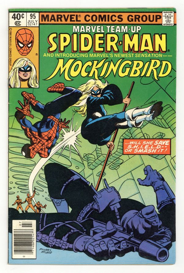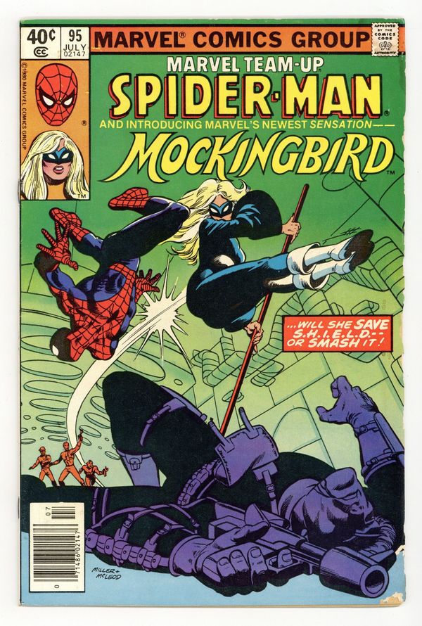$13.50Newsstand Edition. "And No Birds Sing!" Guest-starring Spider-Man and Mockingbird (1st appearance). Script by Steven Grant. Art by Jimmy James (breakdowns) and Bruce Patterson (finishes). Cover by Frank Miller and Bob McLeod. A rogue SHIELD branch director tricks the web-slinger into believing that Nick Fury's life is in jeopardy! Specifically, from a former SHIELD operative...Barbara Morse! However, Mockingbird is actually trying to save Nick Fury. Will Spider-Man realize that in time? First appearance of Bobbi Morse as Mockingbird. (Notes: After a cameo appearance in Contest of Champions 1, Mockingbird appears next in the first Hawkeye Limited Series published in 1983. The letters page contains a brief essay from Mark Gruenwald about the creation of Mockingbird.) 36 pages. Cover price $0.40.