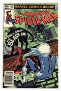 Tags: Spider-Man$19.00Newsstand Edition. "But the Cat Came Back" Part 1 of 2. Script by Roger Stern. Art by John Romita Jr. (breakdowns) and Jim Mooney (finishes). Cover by John Romita Jr. and Al Milgrom. Because the fans demanded her, the Black Cat is back! And flirting and fighting with the web-slinger all over again! After Felicia escapes from the psychiatric hospital, she resumes her high-dollar heists! But soon realizes that it's not as much fun without Spider-Man chasing her! So the cat burglar extraordinaire arranges an evening rendezvous with her favorite wall-crawler at their first date location (from Amazing Spider-Man 194). Will the enchanting cat mesmerize the Spectacular Spider-Man once more? Or can the web-slinger resist her feline charms? An excellent issue! Cameo appearances by the Foolkiller and Captain Jean DeWolff. (Notes: This was a highly anticipated issue for fans of the wall-crawler; and Stern & Romita Jr. did not disappoint. The Black Cat previously appeared in Amazing Spider-Man 205. This story was reprinted in Spider-Man Magazine 2 and also in the trade paperback: Spider-Man vs. the Black Cat (2005). The back cover features a full-page ad for Dungeons & Dragons with art by Bill Willingham.) 36 pgs. Cover price $0.60.