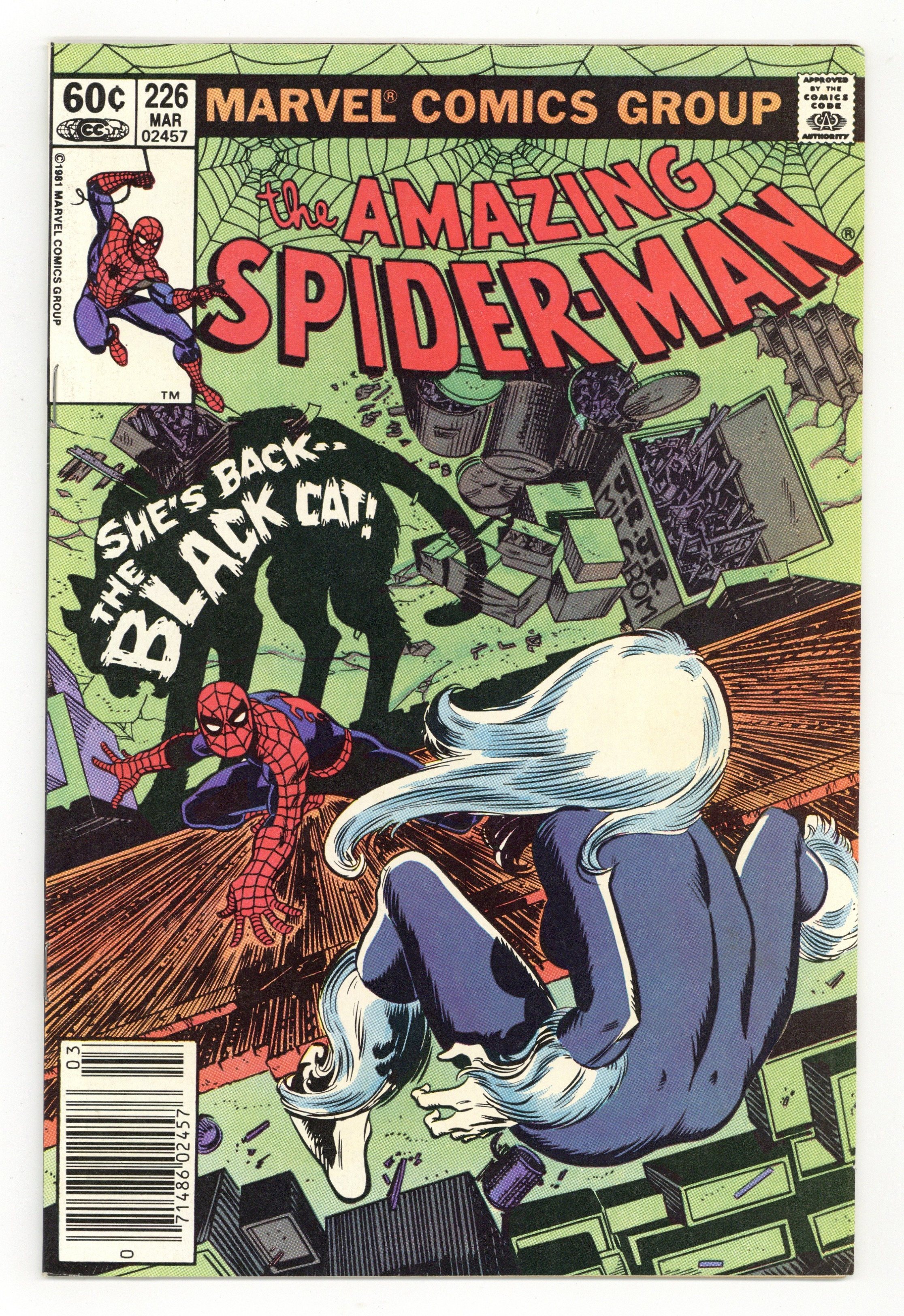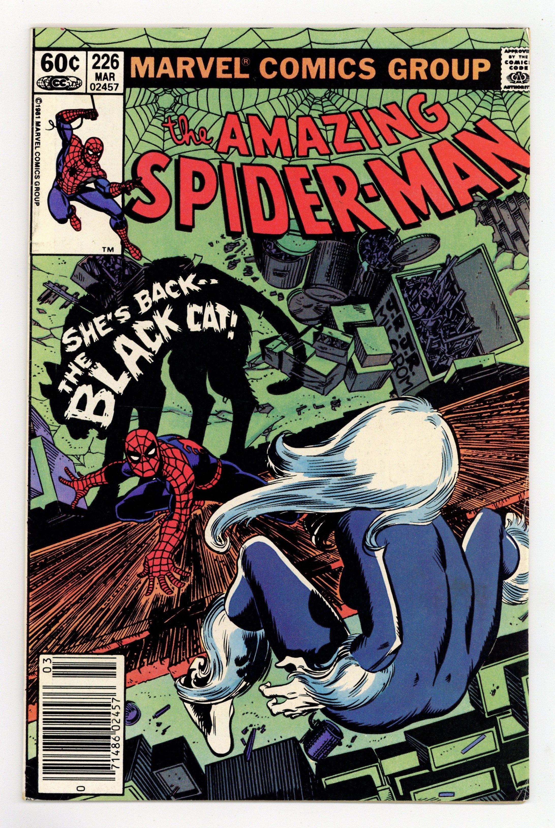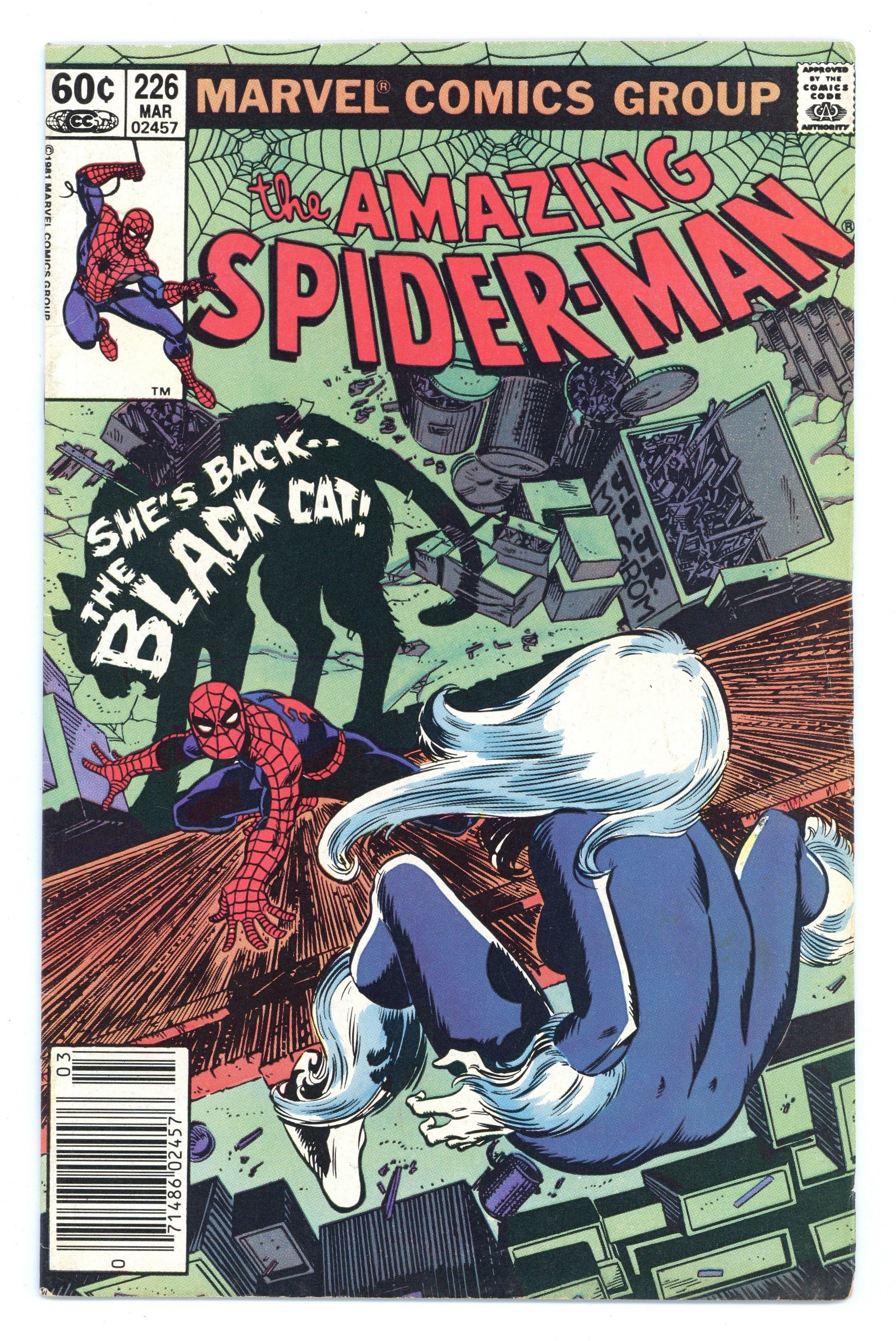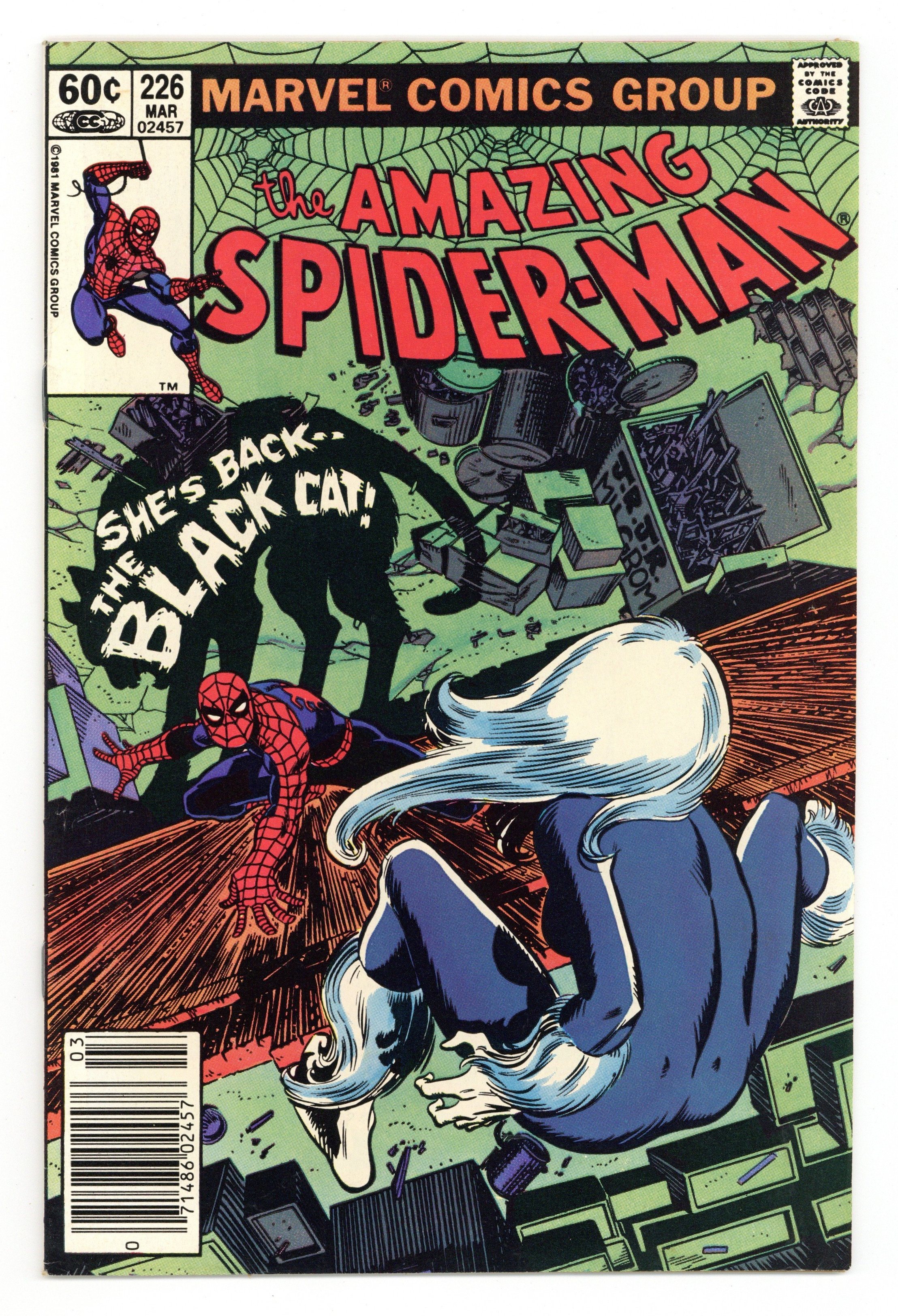 Tags: Spider-Man$15.00Newsstand Edition. "But the Cat Came Back" Part 1 of 2. Script by Roger Stern. Art by John Romita Jr. (breakdowns) and Jim Mooney (finishes). Cover by John Romita Jr. and Al Milgrom. Because the fans demanded her, the Black Cat is back! And flirting and fighting with the web-slinger all over again! After Felicia escapes from the psychiatric hospital, she resumes her high-dollar heists! But soon realizes that it's not as much fun without Spider-Man chasing her! So the cat burglar extraordinaire arranges an evening rendezvous with her favorite wall-crawler at their first date location (from Amazing Spider-Man 194). Will the enchanting cat mesmerize the Spectacular Spider-Man once more? Or can the web-slinger resist her feline charms? An excellent issue! Cameo appearances by the Foolkiller and Captain Jean DeWolff. (Notes: This was a highly anticipated issue for fans of the wall-crawler; and Stern & Romita Jr. did not disappoint. The Black Cat previously appeared in Amazing Spider-Man 205. This story was reprinted in Spider-Man Magazine 2 and also in the trade paperback: Spider-Man vs. the Black Cat (2005). The back cover features a full-page ad for Dungeons & Dragons with art by Bill Willingham.) 36 pgs. Cover price $0.60.