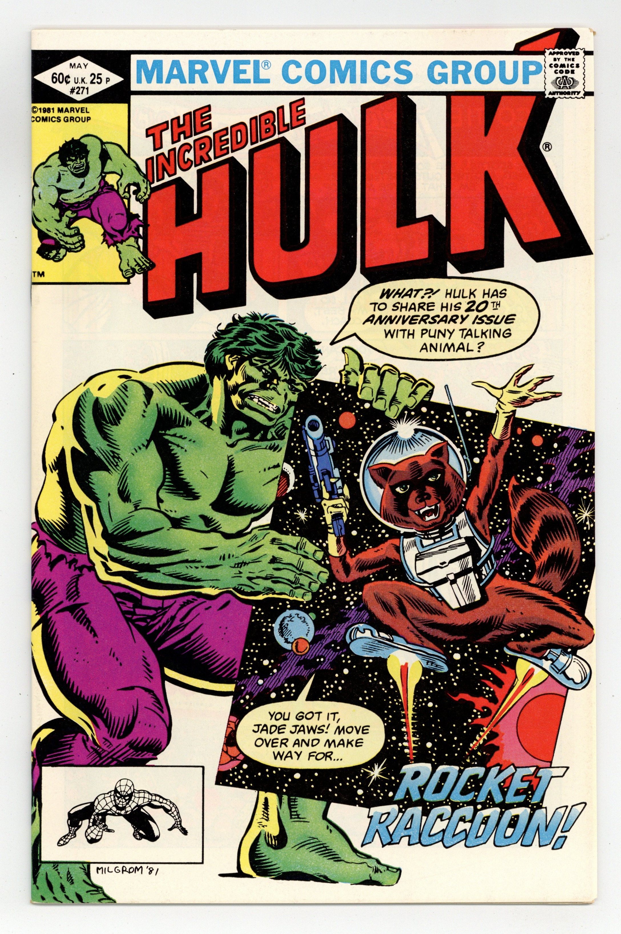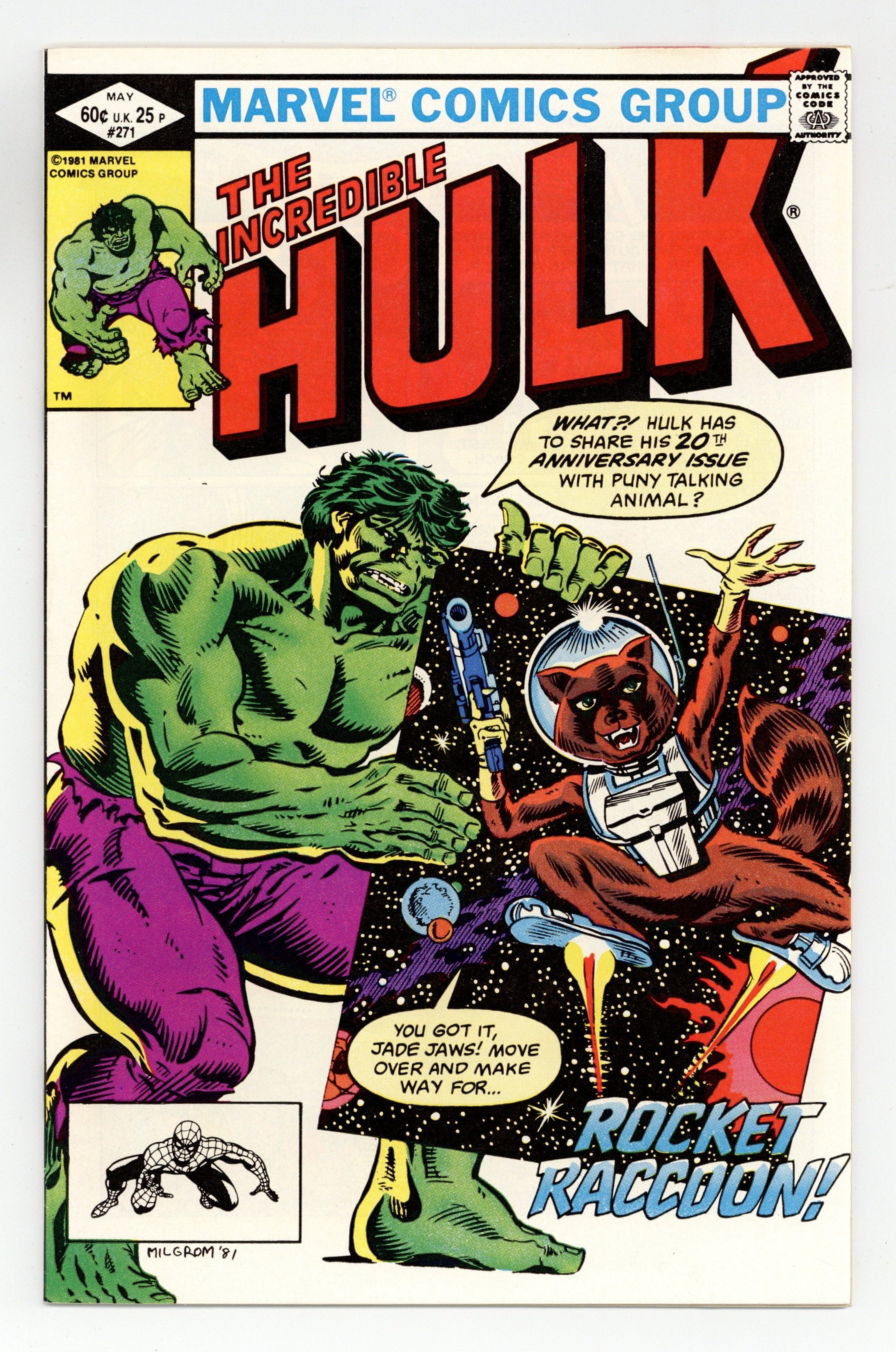 Ends Dec 8 8:37 PM CST Bid History 13 bids Current Bid $107 Your Secret Max Bid If you'd like to bid, please log in or register. Direct Edition. 2nd appearance of Rocket Raccoon (see Marvel Preview #7 for 1st appearance). Story by Bill Mantlo. Art by Sal Buscema. The Hulk celebrates his 20th Anniversary with one of the most offbeat stories of all. Following the events of last issue, Hulk hurtles through the void only to run into the marvelous Rocket Raccoon and his band of colorful friends. Can the Hulk aid Rocket and his crew against the machiavellian Judson Jakes and his sinister scientist, the tortoise Uncle Pyko? 36 pages. Cover price $0.60.