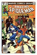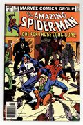 Tags: Spider-Man$25.00Newsstand Edition. "One for Those Long Gone!" Part 2 of 2. Guest-starring the Punisher. Script by Marv Wolfman. Art by Keith Pollard (breakdowns) and Jim Mooney (finishes). Cover by Keith Pollard and Joe Rubinstein. After surviving his nervous encounter with the Punisher, Peter Parker slips on his red and blue costume and joins the gun-toting vigilante's pursuit of the drug lords! Spider-Man wants to capture them. The Punisher wants to kill them. Something has got to give! Will the superhero or the anti-hero win the battle of wills? Cameo appearances by J. Jonah Jameson, Joe Robertson, and Dr. Jonas Harrow. (Notes: Spider-Man and the Punisher tangle again in Amazing Spider-Man Annual 15. This issue includes a sideways full-page ad featuring Batroc the Leaper promoting Crazy Magazine. This story was reprinted in Marvel Tales 219.) 36 pages Cover price $0.40.