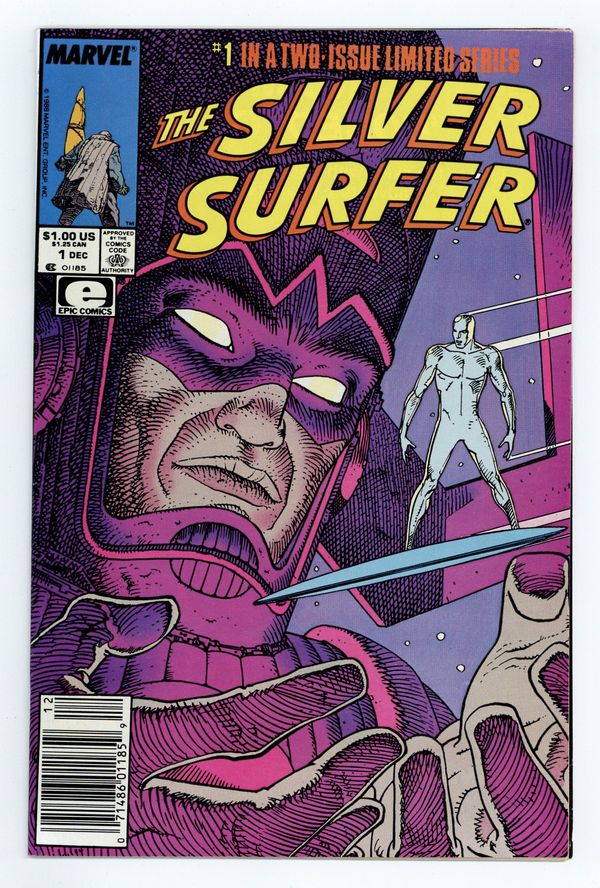 Newsstand edition. Cover by Moebius. Parable, script by Stan Lee, art by Moebius; The Silver Surfer is a street person on Earth when Galactus arrives and proclaims himself God and tells everyone to have a good time. 36 pgs., full color. $1.00. Cover price $1.00.