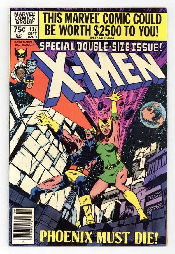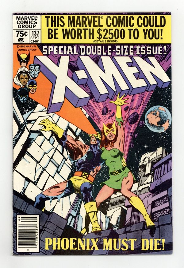Newsstand Edition. The Dark Phoenix Saga: Part 9 of 9 - "The Fate of Phoenix!" Guest-starring the Watcher. Story by Chris Claremont and John Byrne. Art by John Byrne and Terry Austin. The persona of the Dark Phoenix has subsided, but for how long? The Shi'ar Empire doesn't plan to wait and find out. While as Dark Phoenix, Jean murdered untold billions, and the alien empire plans to see her pay for her crimes. Now, the X-Men must battle the Shi'ar Imperial Guard in a dual to decide the fate of Jean Grey. Don't miss the stunning conclusion to the greatest X-Men saga of all time!