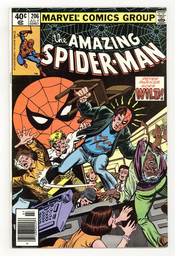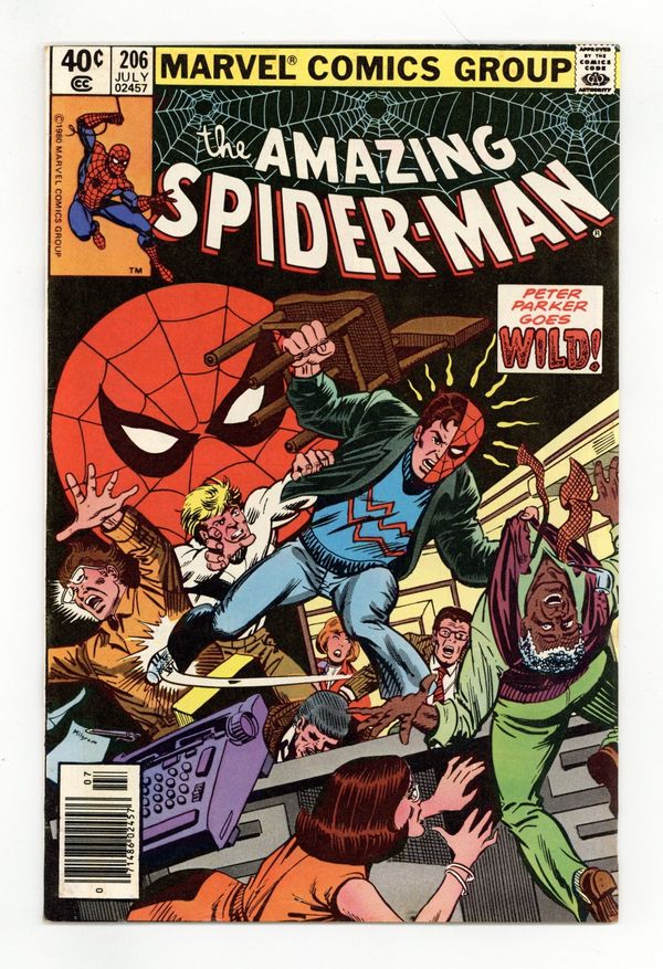 Tags: Spider-Man$7.00Newsstand Edition. "A Method in His Madness!" Script by Roger Stern. Art by John Byrne (breakdowns) and Gene Day (finishes). Cover by Al Milgrom. For the past few weeks, the devious Dr. Jonas Harrow has tormented J. Jonah Jameson with his Mental Attitude Response Variator (MARV) ray! And after forcing the Daily Bugle's publisher to have a nervous breakdown, the twisted doctor turns his attention to the city editor: Joe Robertson! While blasting Robbie (from afar) with the MARV ray, Dr. Harrow decides to radiate the entire Bugle city room! But the mad scientist is not aware that Spider-Man's alter-ego has stopped by for a visit! One thing leads to another...and the web-slinger, Jonah, and Jonas rendezvous for a meeting of the minds! May the craziest man win! (Note: This is one of only three issues John Byrne penciled for the Amazing Spider-Man title (1st series): issues 189, 190, and 206.) 36 pgs. Cover price $0.40.