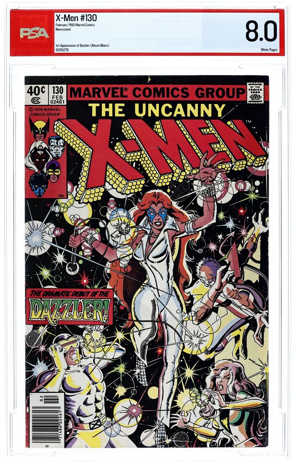Ends Jan 15 9:46 PM CST Bid History 11 bids Current Bid $1,100 Your Secret Max Bid If you'd like to bid, please log in or register. Newsstand Edition. The Dark Phoenix Saga: Part 2 of 9 - "Dazzler!" Story by Chris Claremont and John Byrne. Art by John Byrne and Terry Austin. Wolverine, Colossus, and Storm have been taken captive by the sultry and dangerous White Queen, but for what purpose. Only the young new mutant Kitty Pryde can warn the rest of the team, but will she be in time to save her new friends? Meanwhile, Cyclops and Phoenix encounter another "new mutant" called Dazzler. Plus, Jason Wyngarde continues his mental seduction of Jean Grey. NOTE: 1st appearance of Dazzler. Cover price $0.40.