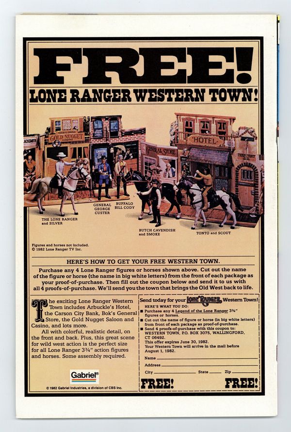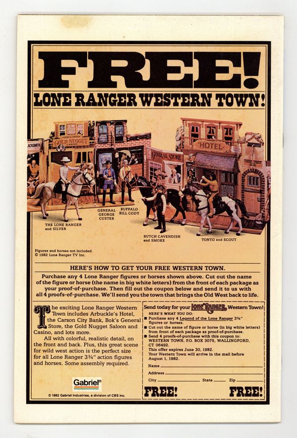 $24.00Newsstand Edition. Cover pencils by Frank Miller, inks by Klaus Janson. Last Hand, script by Frank Miller, pencils by Frank Miller (breakdowns) and Klaus Janson (finished art), inks by Klaus Janson; Bullseye breaks out of prison; Elektra hunts down Foggy and is about to kill him until she recognizes him as Matt's buddy from college; Bullseye fights Elektra and kills her with her own sai; DD goes after Bullseye and ends up dropping him from a great height, breaking every bone in his body; Kingpin appearance; story narrated by Bullseye; story dedicated to the memory of Wally Wood 1927-1981. Full page pin-up ad for Marvel Fanfare, art by Michael Golden. Statement of Ownership average # of copies in preceding 12 months: 276,812. 36 pgs. Cover price $1.00.