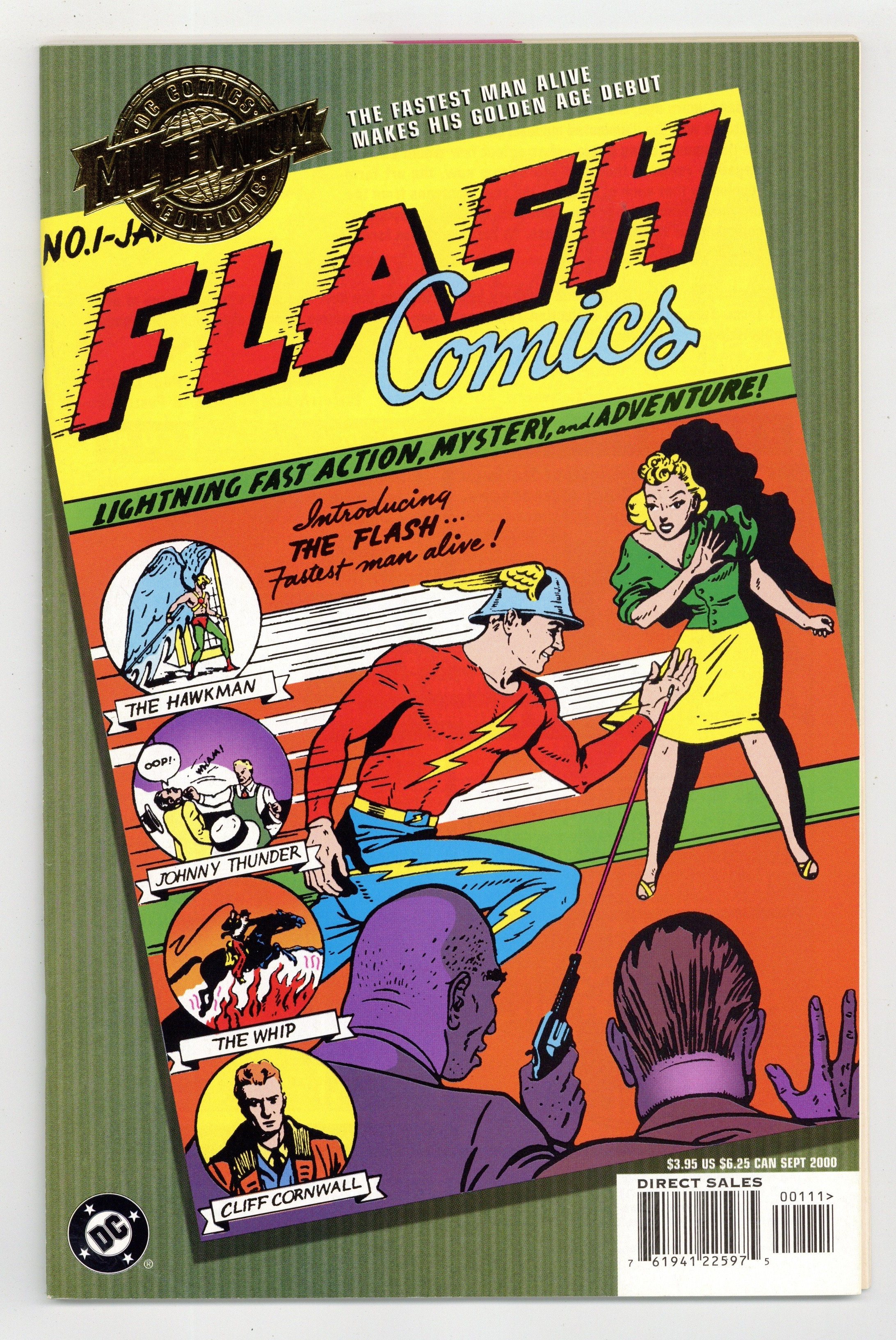 WRITTEN BY GARDNER FOX, SHELDON MOLDOFF, JOHN B. WENTWORTH, AND ED WHEELAN; ART BY HARRY LAMPERT, MOLDOFF, DENNIS NEVILLE, STAN ASCH, WHEELAN, AND GEORGE STORM; COVER BY MOLDOFF. Because online voters demanded it! A true Golden Age classic, this incredible 1940 issue features not only the debut of Jay Garrick, the first Flash, but also the first appearances of Hawkman, Johnny Thunder, and more. "This was the start of the Gardner Fox age of storytelling" notes retailer Joe Field of Concord, California's Flying Colors. Visit www.dccomics.com to vote on future MILLENNIUM EDITIONs. Look for a signed version in the Dynamic Forces section of Previews. FC, 64 PG. Cover price $3.95.