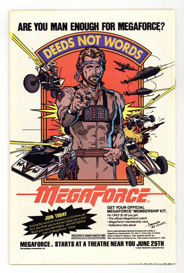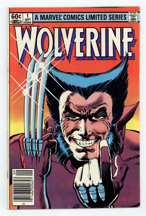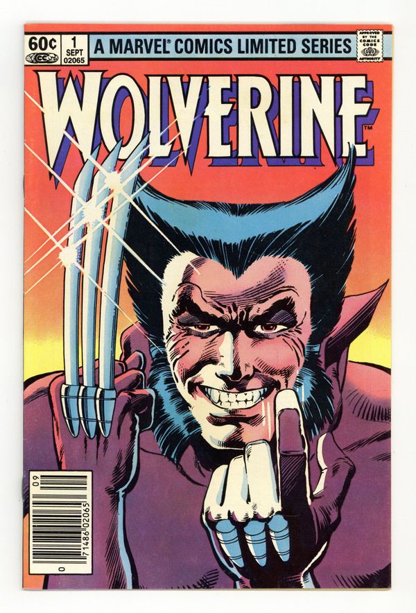 Newsstand Edition. 1 of 4 Featuring Wolverine in his first solo series fighting in Japan. "Wolverine." Script by Chris Claremont, pencils by Frank Miller, inks by Joe Rubinstein. Miller/Rubinstein cover. Back cover MegaForce ad with art by William Stout. Cover price $0.60.