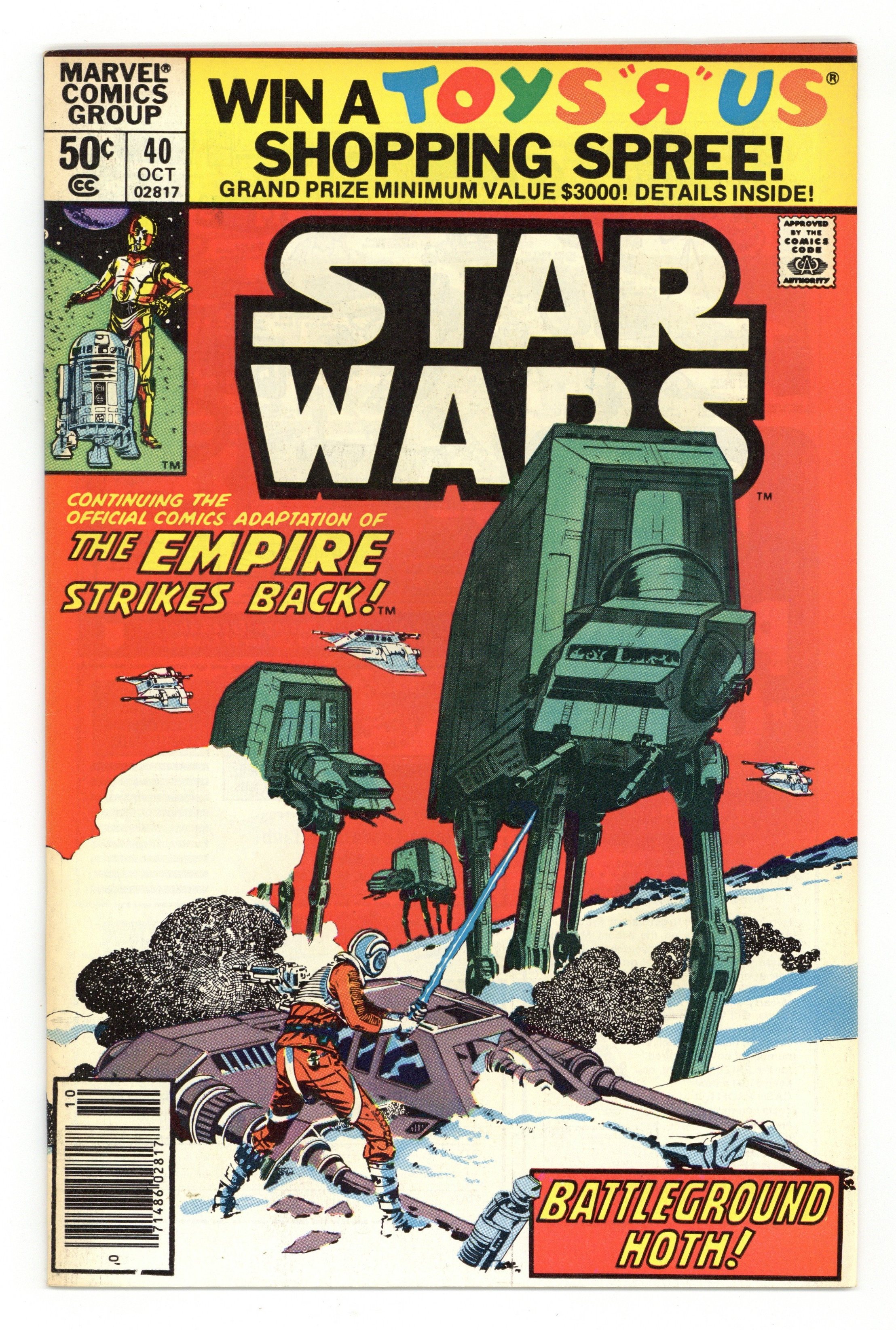 Newsstand Edition. The Empire Strikes Back: Part 2 of 6. "Battleground Hoth!" Script by Archie Goodwin, art by Al Williamson, Carlos Garzon and Rick Veitch (walkers). Note: Part 2 of movie adaptation; based on the movie script; Williamson and Garzon both pencil and ink the art for this series. Cover by Williamson and Garzon. Cover price $0.50.