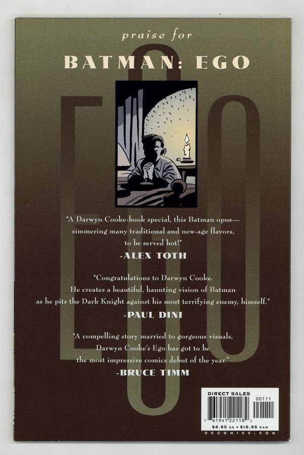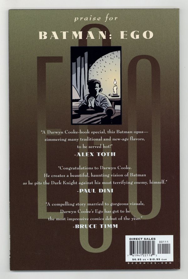 WRITTEN AND ILLUSTRATED BY DARWYN COOKE; COVER BY COOKE. A stylish Prestige one-shot set early in Batman's career explores the psychological pressures that drive the Dark Knight. Prestige Format. FC, 64 PG. Cover price $6.95.
