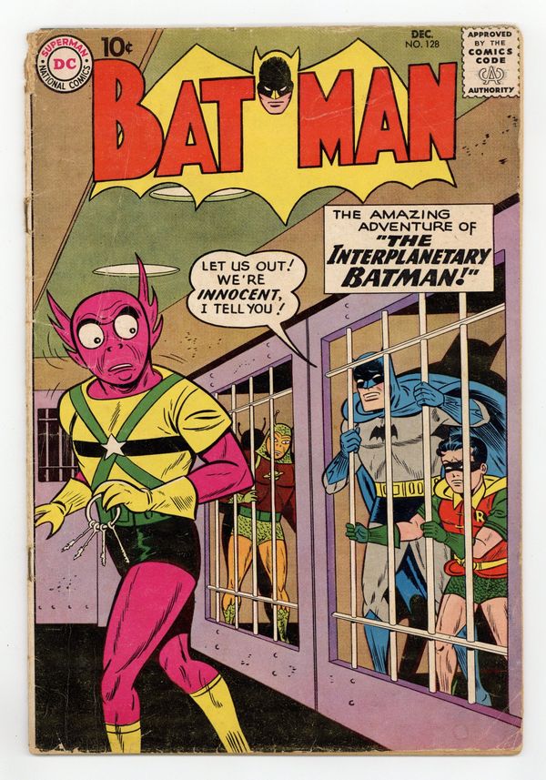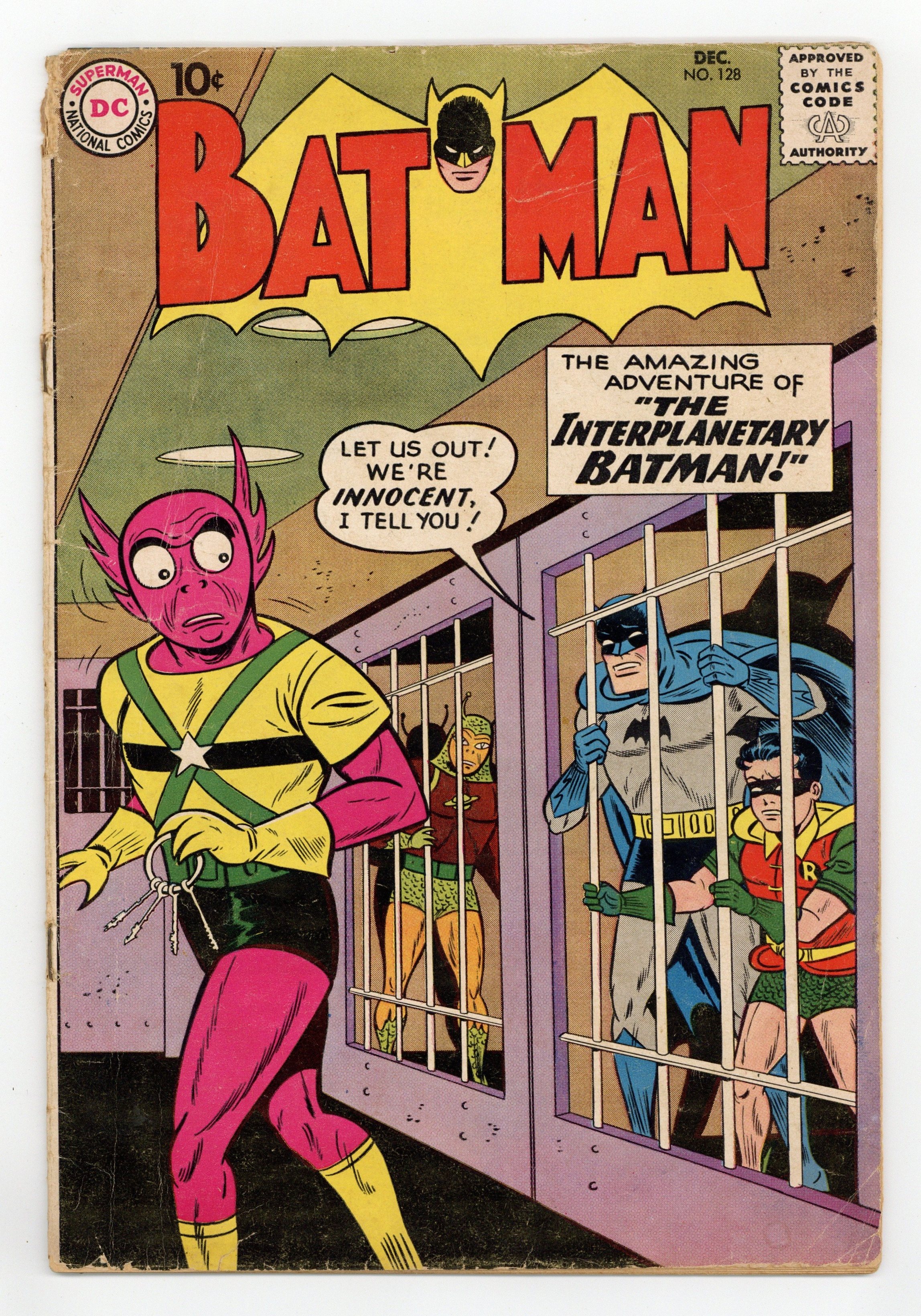 Cover by Sheldon Moldoff. "The Interplanetary Batman," script by Bill Finger, art by Sheldon Moldoff; Batman and Robin spot an alien being in need of help, and by doing so, get captured and transported to a strange planet. The Atom Servant of Man public service announcement, script by Jack Schiff, inks by Tommy Nicolosi. "The Million Dollar Puzzle," script by Bill Finger, pencils by Sheldon Moldoff, inks by Charles Paris; The Caped Crusaders are hot on the trail of some auction items that were stolen, each of which are clues to the location of $1,000,000! One-page Warden Willis story by Henry Boltinoff. "The Batman Baby," script by Bill Finger, pencils by Sheldon Moldoff, inks by Charles Paris; Batman is given a baby to protect from danger and learns the child belongs to the Prince and Princess of Morania; When the baby is kidnapped, Batman follows the kidnapper, saves the Royal family and the child. 36 Pages, Full Color. Cover price $0.10.
