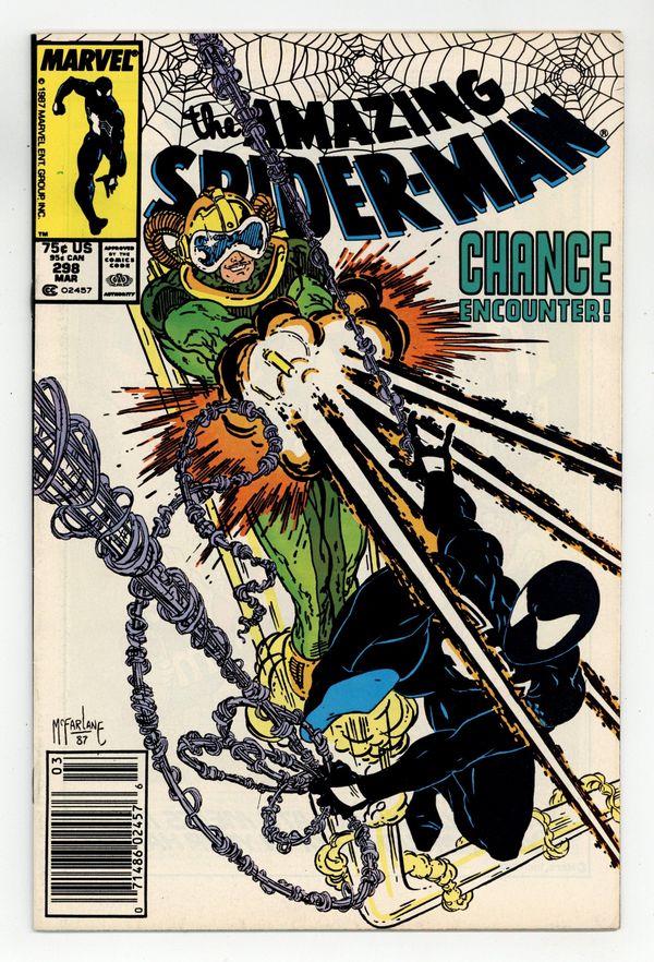 Tags: Spider-Man$105.00Newsstand Edition. "Chance Encounter!" Part 1 of 2. Script by David Michelinie. Pencils by Todd McFarlane. Inks by Bob McLeod. Cover by Todd McFarlane. Chance is back in business and working a new job for the Life Foundation! The clandestine organization wants Chance to steal an arms shipment coming into the west side docks! That should be a piece of cake for the high-flying mercenary! However, the Daily Bugle dispatches an undercover photographer to observe the delivery! And beneath the moonlit sky, fireworks explode when Chance and the Amazing Spider-Man throw down on the docks! First appearance (and cameo on the last page) by Eddie Brock (aka Venom). First appearance of Carlton Drake of the Life Foundation. Cameo appearances by Mary Jane Watson, Joy Mercado, and Joe Robertson. (Notes: Chance previously appeared in Web of Spider-Man 15. This issue begins Todd McFarlane's 2-year run as the penciler of the Amazing Spider-Man series.) 36 pages. Cover price $0.75.