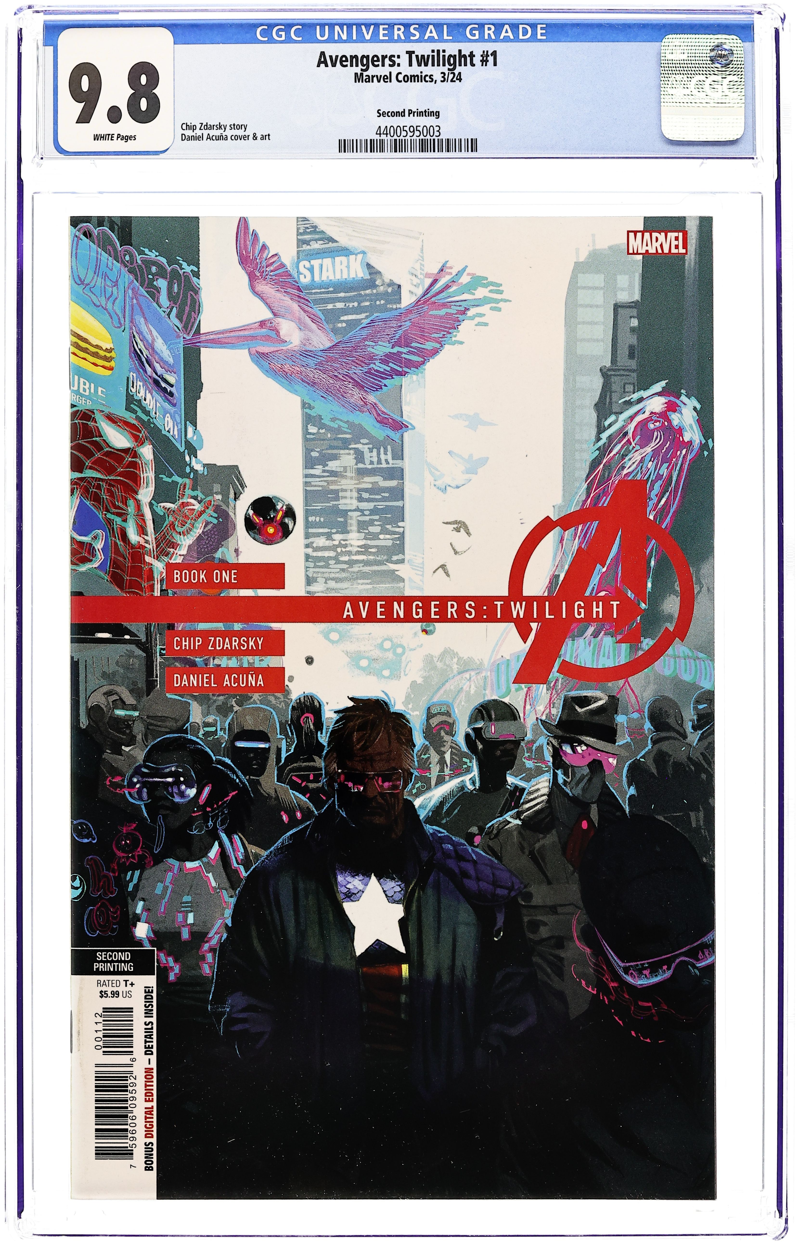 2nd Printing. Written by Chip Zdarsky. Art & Cover by Daniel Acuna. In a gleaming new world of prosperity, Captain America is no more. But Steve Rogers still exists, floating through an America where freedom is an illusion, where THE AVENGERS are strangers and his friends are long dead. But is the Dream? How do you assemble Avengers in a world that doesn't want them? PLUS: A behind-the-scenes look at the making of this issue! 48 pages, full color. Rated T+ Cover price $5.99.If you add this item to your want list, we will email you when it becomes available.